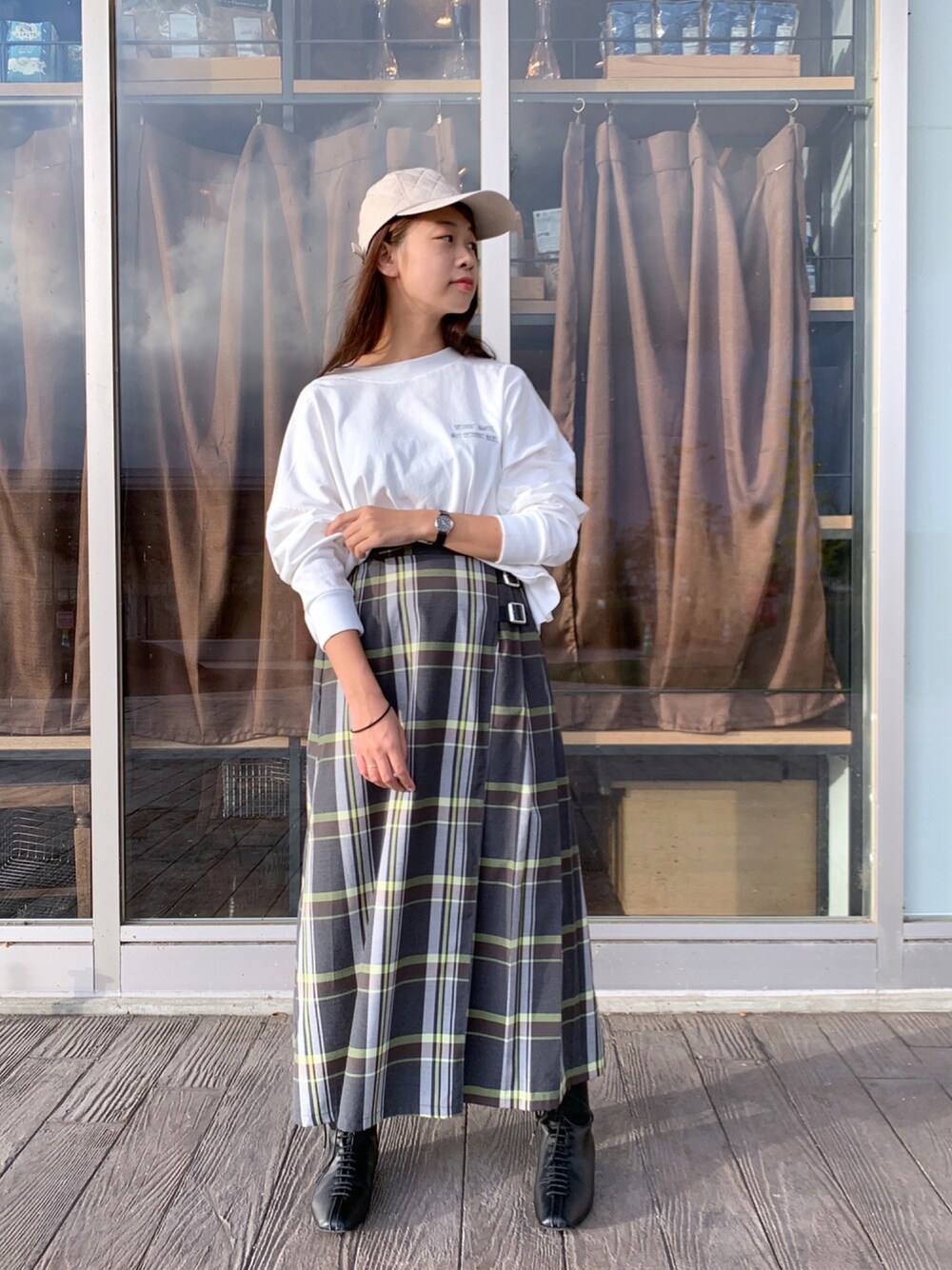 Mayumi(prose verse 福岡マリノアシティ店)のスカート「タータンチェックサイドベルトスカート」を使ったコーディネート