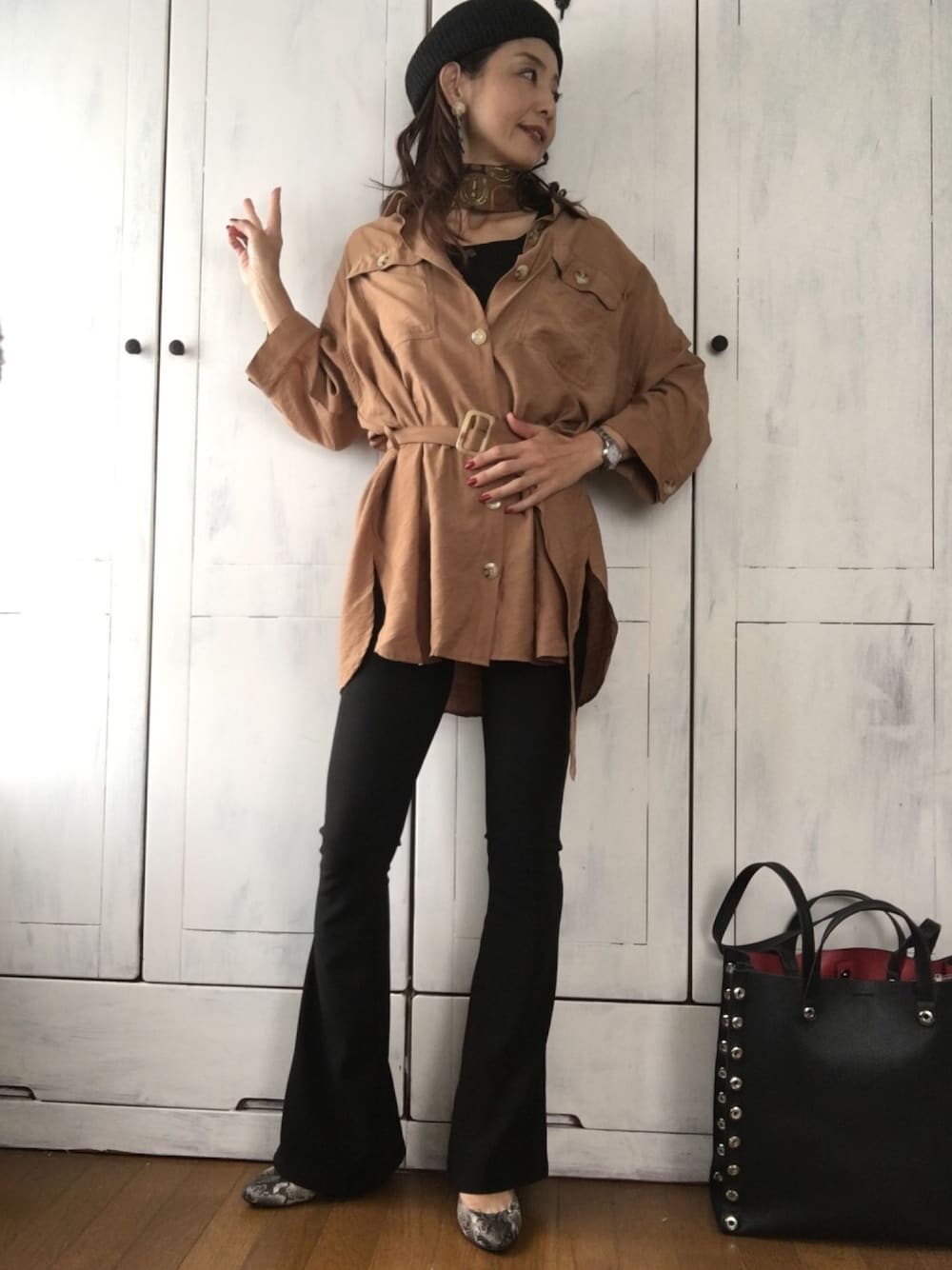 まゆみんのハンチング/ベレー帽「モールヤーンニットベレー帽」を使ったコーディネート