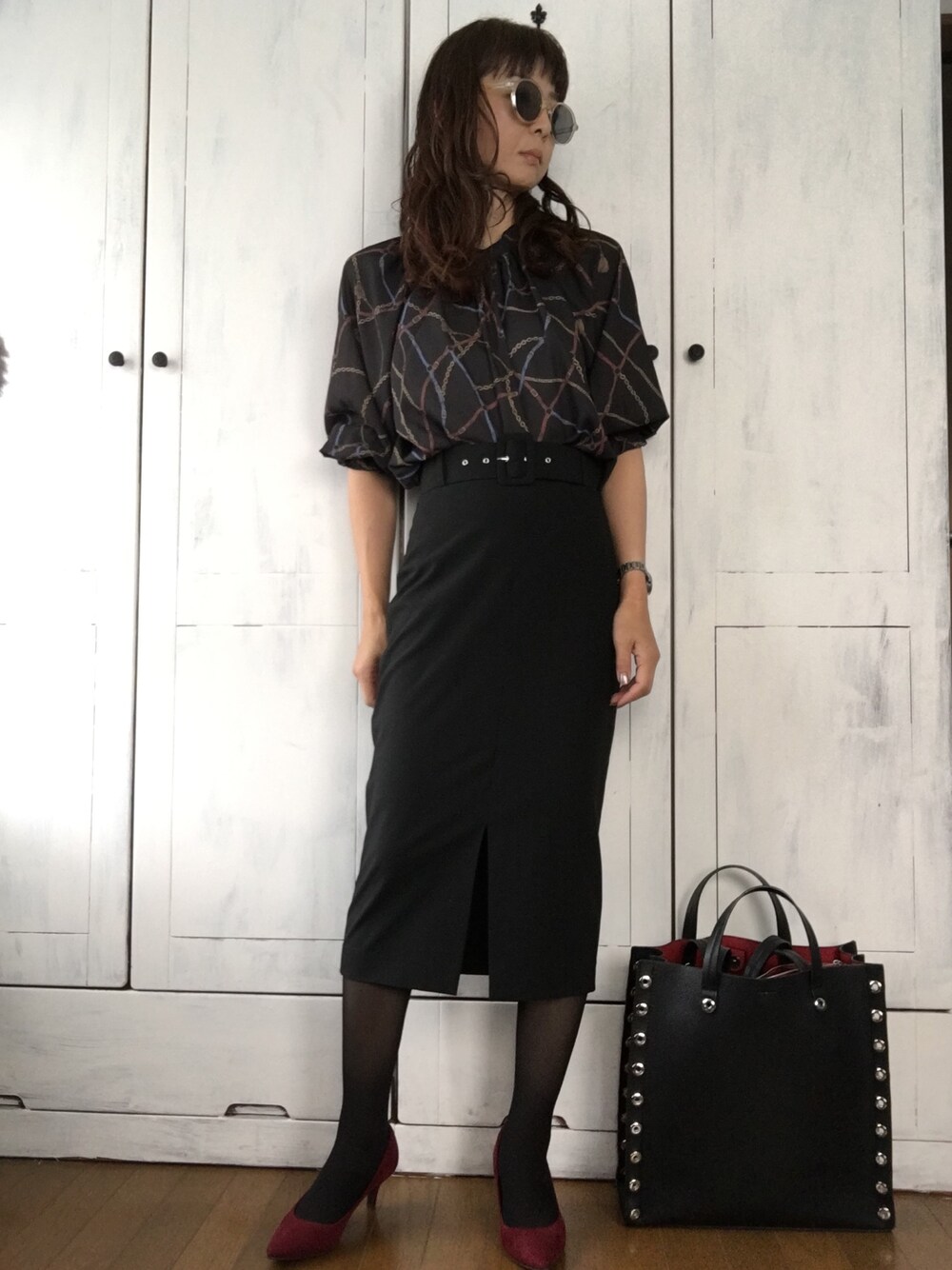 まゆみんのシャツ/ブラウス「チェーンプリントハイネックブラウス」を使ったコーディネート