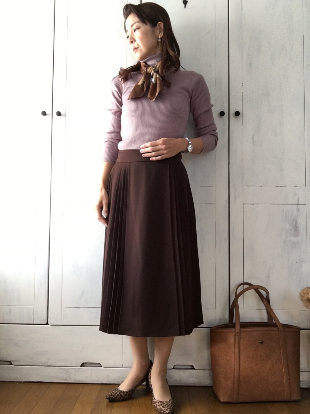 仕事コーデ。優しいピンクと濃いめのブラウン中心にまとめました。 色合わせがいちごチョコ🍫🍓(о´∀`о) よい一日を!