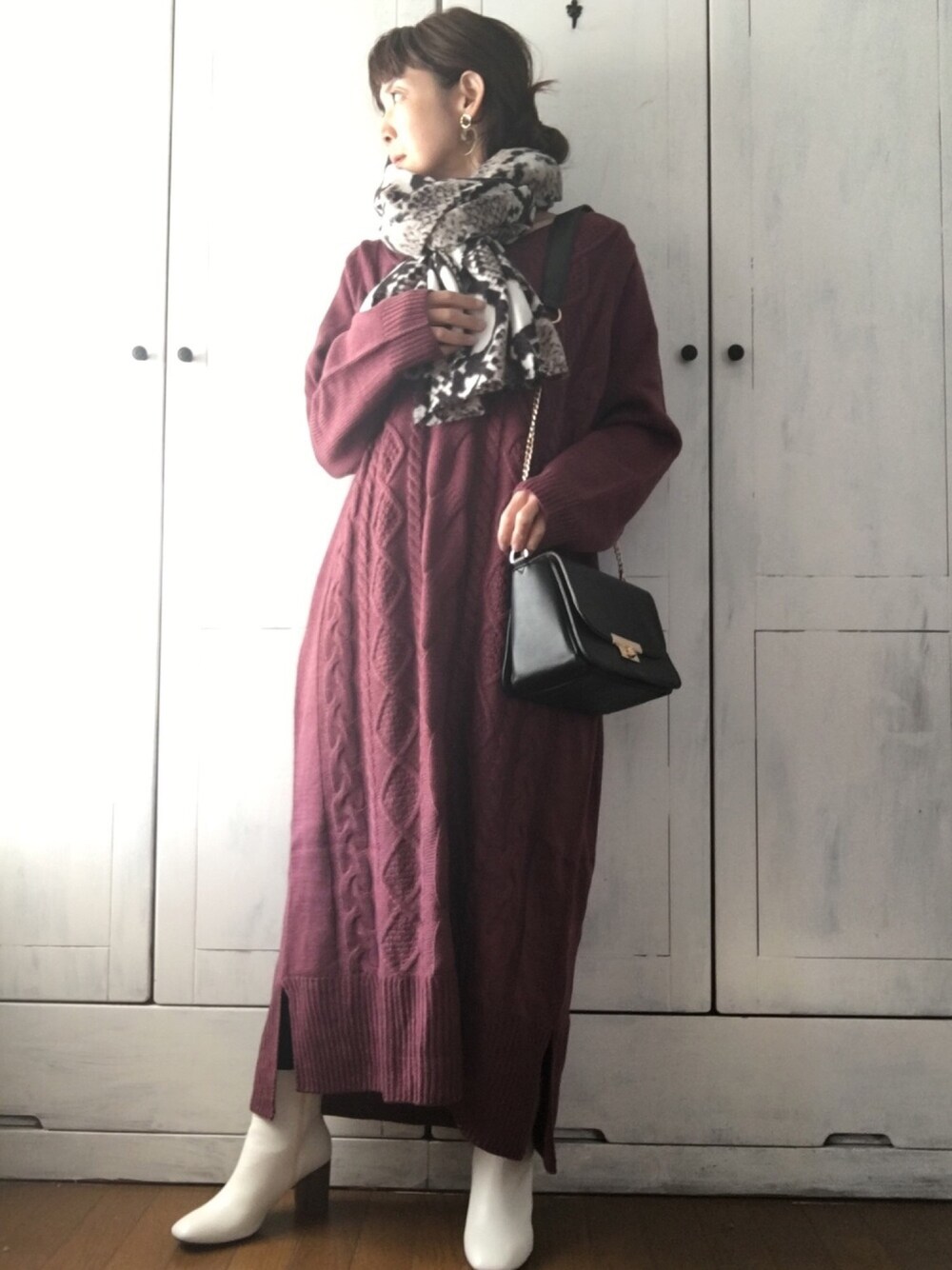 まゆみんのワンピース「『アランケーブルニットワンピース』」を使ったコーディネート