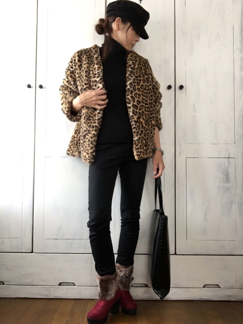 今年は家族のそれぞれのお誕生日ケーキを、無理して手作りしております。決して上手じゃないのだけれども。手作りだと、低コストで特大なおかつフルーツ等モリモリのケーキができあがるので、大食い期の男子4人には最適なのです。 来年から長男が独立するので、家族が集結してお誕生日パーティーするのも最後の年かなと思い、そんな訳で今年だけは手作りなのです。 ケーキ型なぞ使いやしません。オーブンの天板いっぱいいっぱいに流し込み、大きな四角いケーキを焼きます。予めカットしてからデコレーション(これまた適当)し、取り分ける時は洒落たケーキサーバーもあるのに、お好み焼きのヘラを使います。四角くカットされたケーキには、ヘラの方が安定感があるからです。 ろうそくを吹き消す前のあのバースデーソング(全力で歌わないとケーキ食べられないシステム)を歌ったところで、消える炎とともに、母も燃え尽きます(о´∀`о) 今日は三男のためにケーキを焼いてます。 赤ブーツにブラックコーデ、羽織りにレオパのファージャケットをプラスしました。 良い一日を!