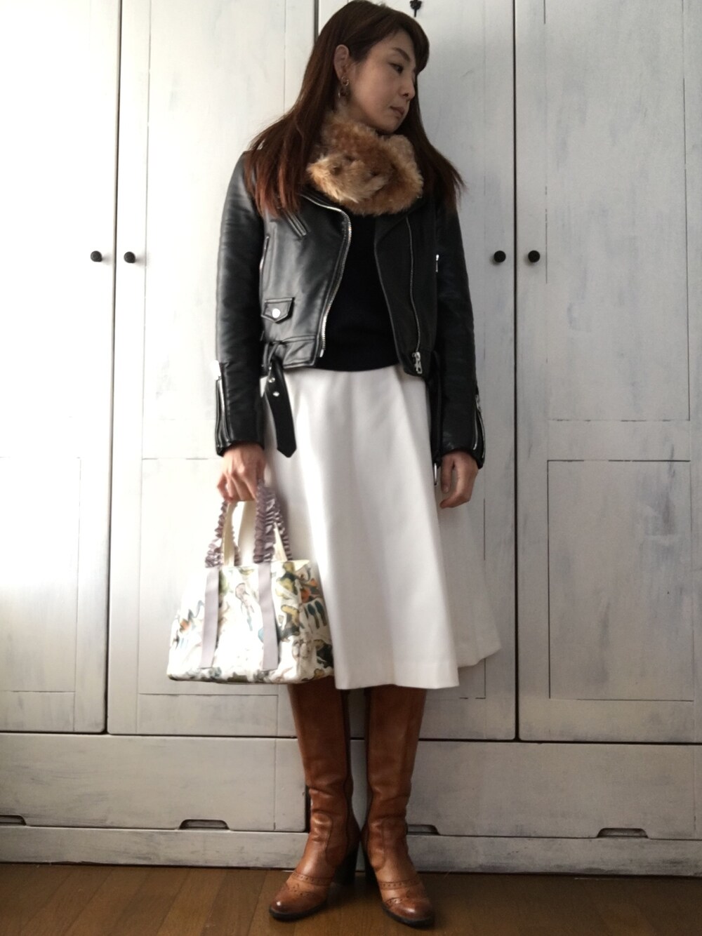 まゆみんのライダースジャケットを使ったコーディネート
