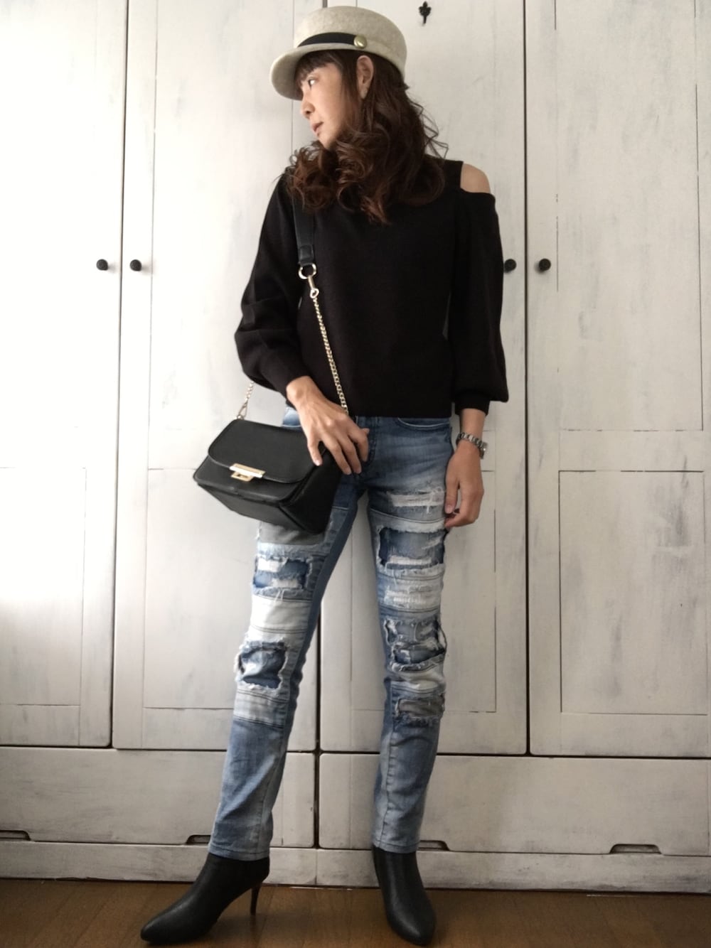 まゆみんのニット/セーター「レイヤード風アシンメトリープルオーバー」を使ったコーディネート