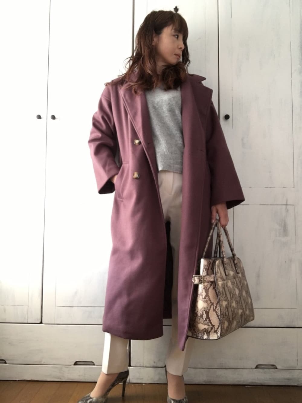 くすんだパープルのコート(о´∀`о) 手持ちのヘビ柄アイテムと合うかなあと思って選びました。 よい一日を!