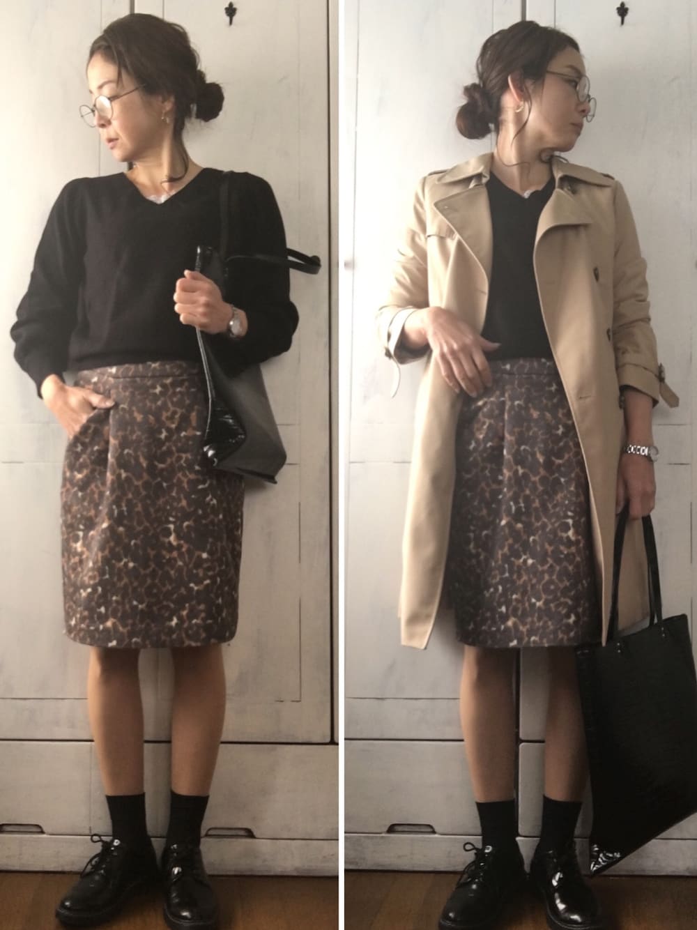 アウターにトレンチばかり着ている今日この頃。 今日は日曜出勤。 新型肺炎の影響で担当イベントがなくなったので、黙々とオフィスで事務作業します。 上司、同僚、お客様と接する事がないと思いますので、今日はこのスカートは枯葉柄ではなくレオパード柄として着ております(о´∀`о) よい一日を!