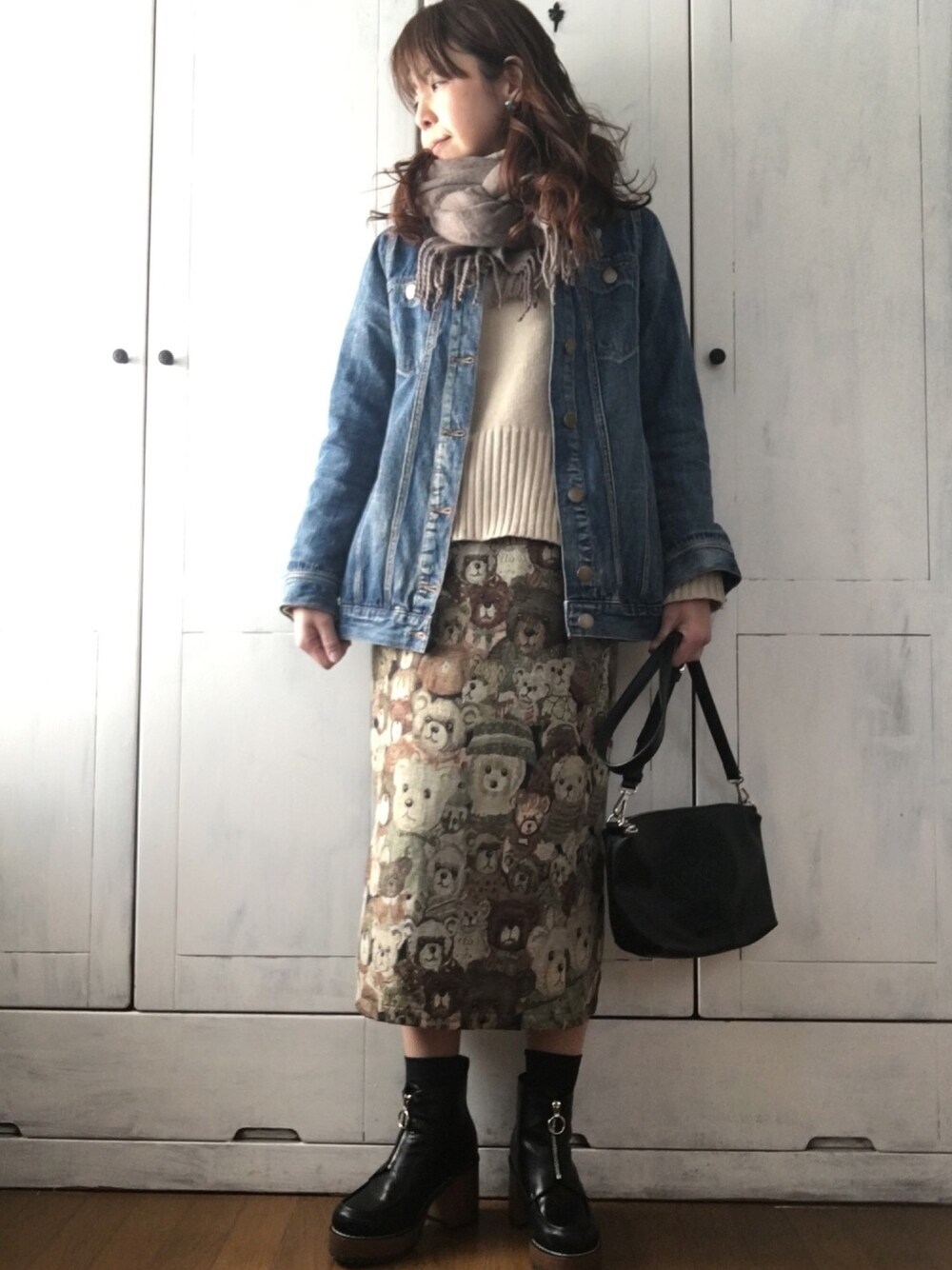 zozo usedで見つけた古着デニジャケのソマリちゃん。程よく色落ちして柔らかくなってきました。しっかり残っていたええ女系の香水もかなり薄れてきましたよ。もうきゅんきゅんしない(о´∀`о) やや寒いですが、ストール巻けばデニジャケで充分凌げる気候です。 くま柄スカートで闇感をプラス。 よい一日を!