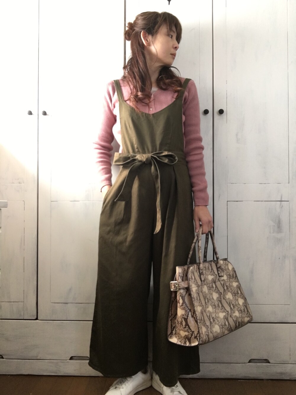 カーキのサロペットに、先日買ってとても気に入ったピンクのトップスを合わせました。 春の服、ついついヘビ柄を合わせてしまいます(о´∀`о) よい一日を!