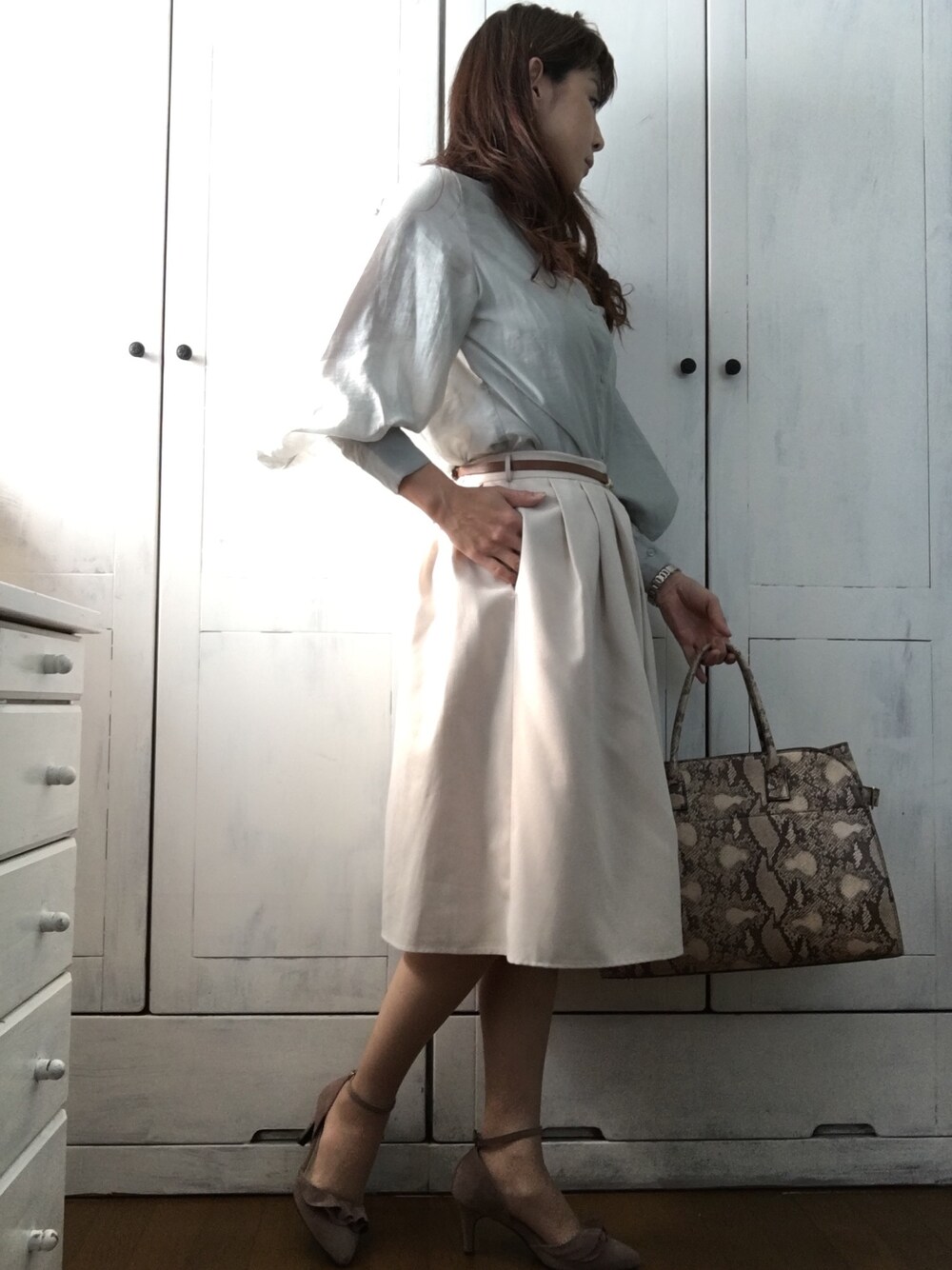 #シアーシャツ いつもカジュアルめに着ていたシアーシャツを、フレアスカートに合わせてきちんとした感じにまとめました。 出勤で使う電車は、やはり本日は人が多くなっていました。 引き続き皆さま、色々とお気をつけてお元気でお過ごしください。 よい一日を!