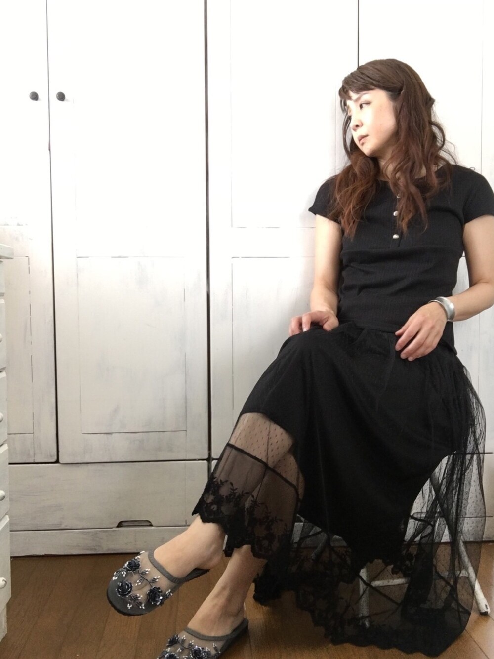 まゆみんのワンピース「『贅沢レースロングペチワンピース』」を使ったコーディネート