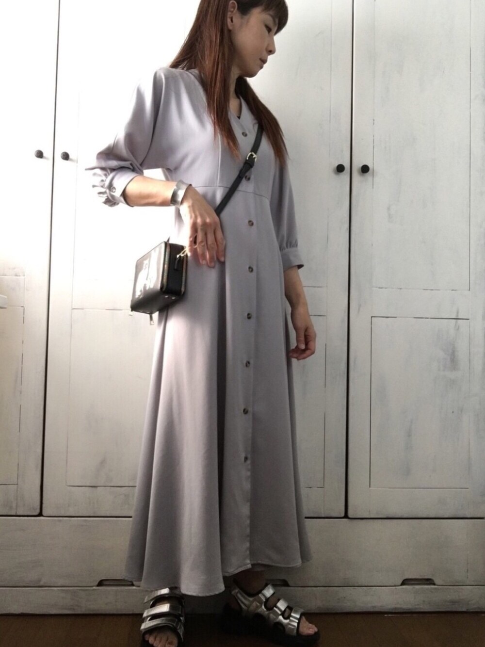 シルエットがとても綺麗なワンピに 黒小物を合わせました。 スポーツサンダルが外しとしてとてもしっくりきました。 スポサン、履き心地ものすごく良いですね(о´∀`о) よい一日を!