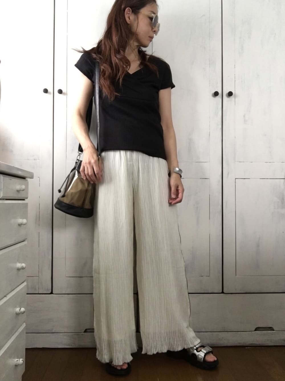 まゆみんのその他パンツ「シフォン楊柳プリーツワイドロングパンツ/ウエストゴム」を使ったコーディネート