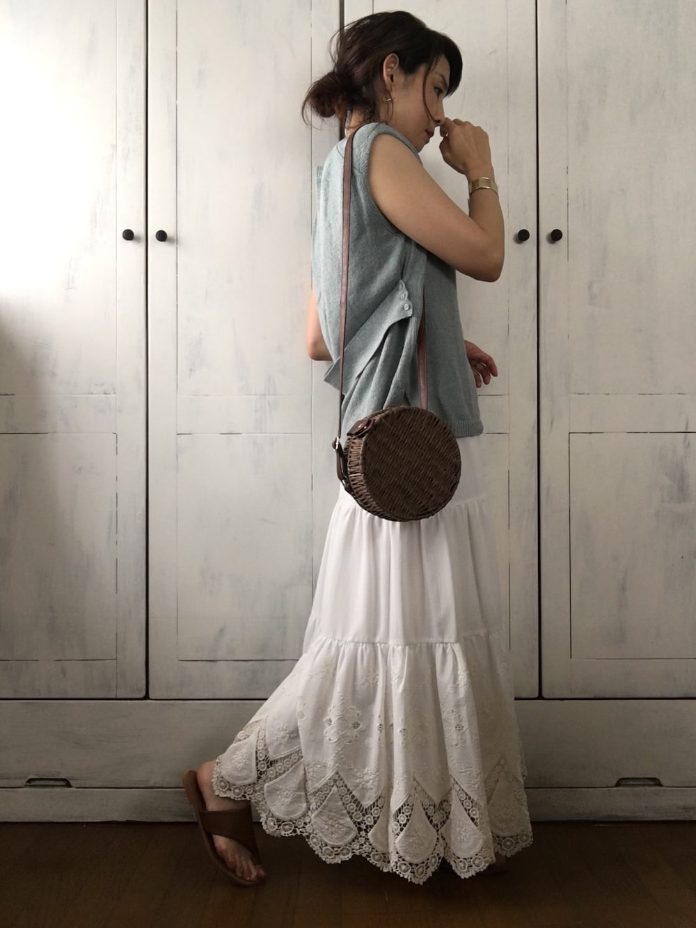 レースたっぷりでしかもティアードのスカート。きゅんきゅんアイテム(о´∀`о) 後ろの太ベルトがポイントのフレンチスリーブニットを合わせました。 よい一日を!