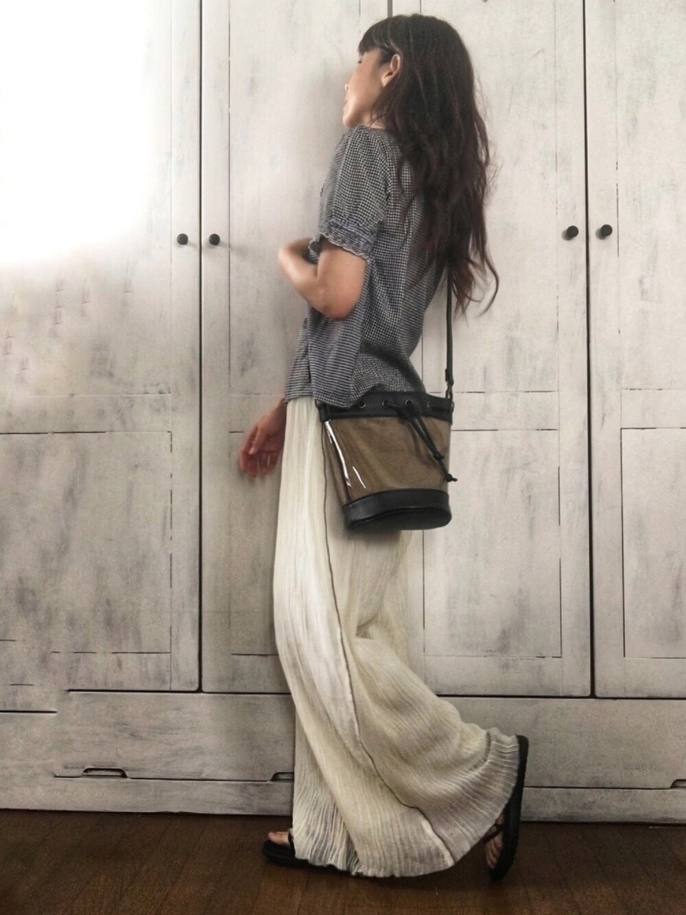 まゆみんのシャツ/ブラウス「ギンガムシャーリング衿ブラウス」を使ったコーディネート