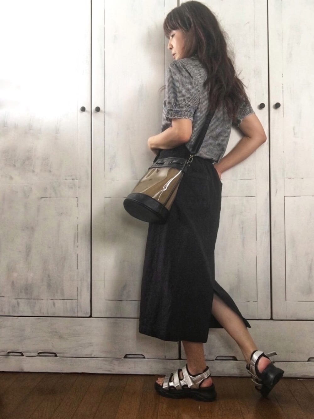 まゆみんのシャツ/ブラウス「ギンガムシャーリング衿ブラウス」を使ったコーディネート