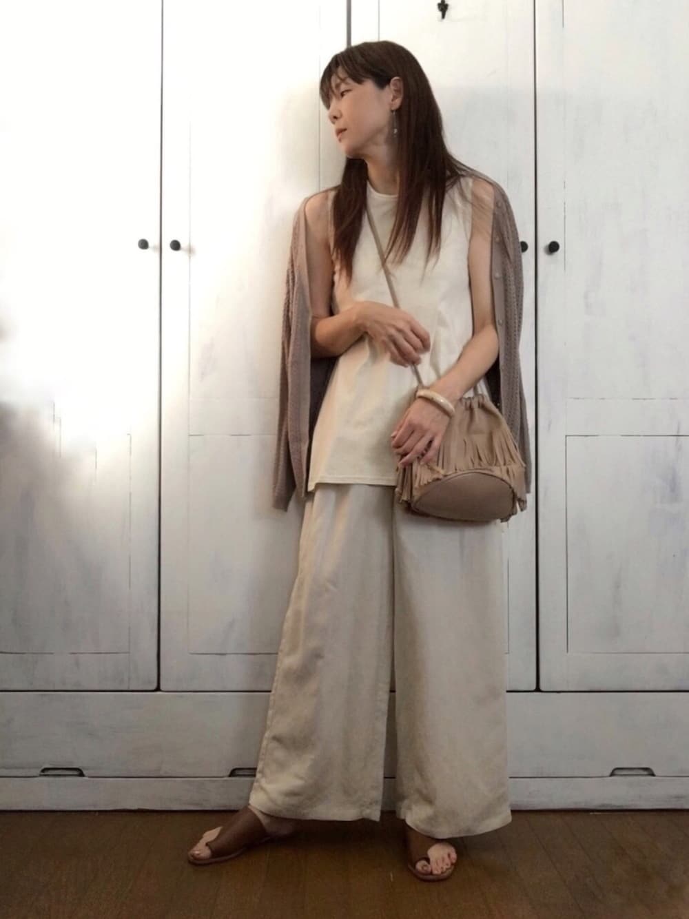 白とベージュでスッキリと。 トップスの裾が変形タイプなので、ちょっとしたアクセントになります👏 こういった、トーンの揃ったコーデに、アクセサリーだけ色モノを持ってくるの好き(о´∀`о) 今日のピアスはアメジストと水晶のゆらゆらタイプです。 優しいお色の組み合わせにきらりと光るお紫さま✨ 恒例の(←いや誰も知らんて)ピアスふりふりムービーは私のインスタで見れますよ( ´ ▽ ` )(←誰も求めていない) 今日も楽しく生きとります。 皆さまもご機嫌よう。 ✨✨✨ maiちゃんフォルダありがとうございました💕 ✨✨✨