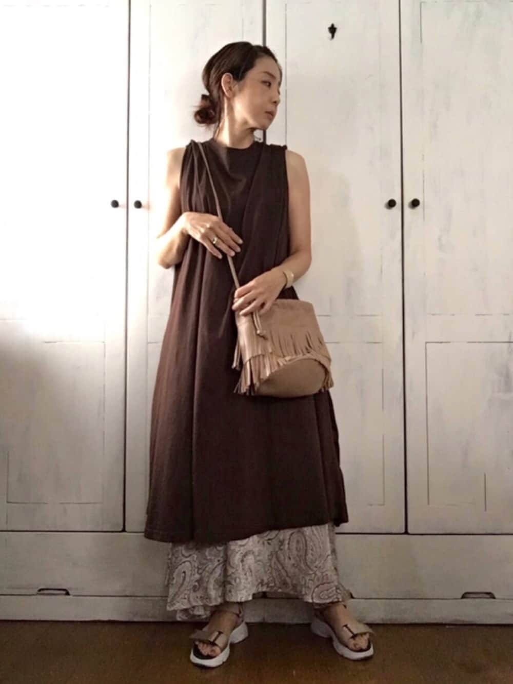 Tシャツみたいなコットン素材のノースリーブワンピは数多くあると思いますが、サマンサモスモスのものは肩にタックが多めに入っていて、肩から裾にかけてスンッと広がるラインが可愛くて買いました。 そして両サイドにポケットつき←最重要項目 ペイズリーのスカートを裾からチラ見せする重ね着をしました。 ✨✨✨前回コーデフォルダありがとうございました😊😊😊 maiさん、N子さん、にゃんさん ✨✨✨✨✨✨