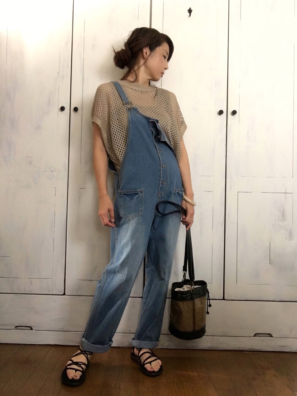 涼しいので気に入っているあみあみニットに、今日はサロペットを合わせました。 脇が広く開いているので、あみあみニットのゆったり部分がはみ出てますけど、って感じがかわいいです。 みなさまいつも色々とありがとうございます。 感謝しております🥺❤️