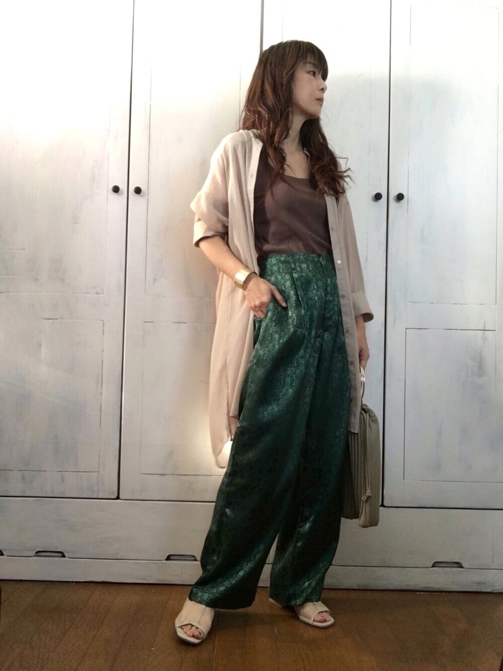 グリーンかつ立体的な織り方が目を引くパンツ。かっこいい🥺💕 ゆったりしていながらシルエットが綺麗です。 移りゆく季節に長く対応できそう✨ いつもみなさま色々とありがとうございます😊❤️