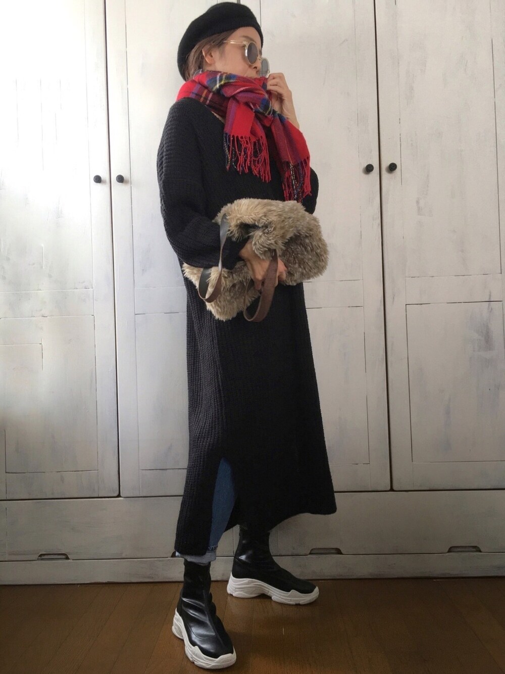 ニットのロングワンピとデニムのレイヤード。 ワンピはざっくりした織りで素材的に毛玉できにくそうな、軽いものです。しかししっかり目なので型崩れやカラダのライン拾いやすいとかもなく、安心して着れます😊 デニムは今気に入っているサムシングのテーパード。ぺろっとめくってブーツと合わせるのもかわいい❤️ そしてこのブーツ、スニーカーのイメージで履けてめちゃいい😍見た目と違い軽いし、シンプルでかわいいし、大活躍の予感✨ 手持ちのストールとバッグ、帽子合わせて、好きな雰囲気になりました。 余談ですがワンピとブーツは今日おZOZOさまのクーポン出てるみたいですね。私の色違い欲しい病、只今強めに症状が出ております。 みなさまいつもありがとうございます😊