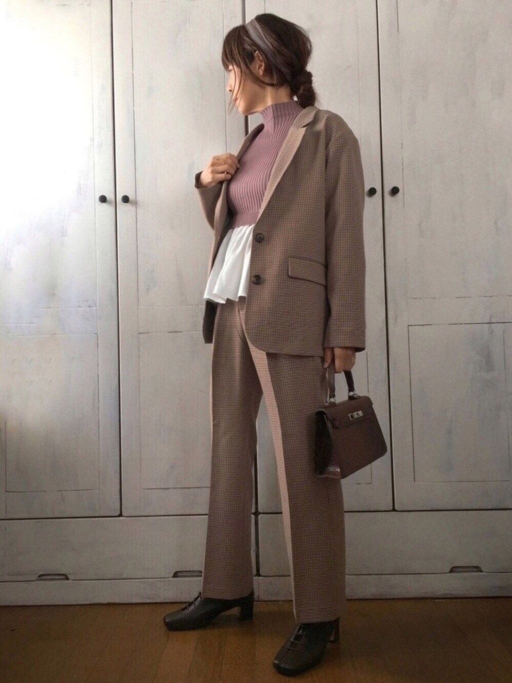 なんかめちゃかわいいトップスが届いてしまったので本日もういっちょ投稿。 いつも見てくださりありがとうございます。 ペプラムな感じのひらひらがかわいいリブレイヤードボリュームスリーブブラウス。 モカ色のリブの部分がフィットするデザインなので、胸元の女性らしさとひらひらペプラムの可愛らしさとのバランスが秀逸なトップスです。 これはスタイルアップ間違いなし🥰ありがたや。 ガンクラブチェックの柄、シルエット、シワになりにくさ、お手入れのしやすさ等で惚れ込んでいるローリーズファームのセットアップに合わせました。キュートめに着るセットアップって新鮮✨ お付き合い頂きありがとうございました😊