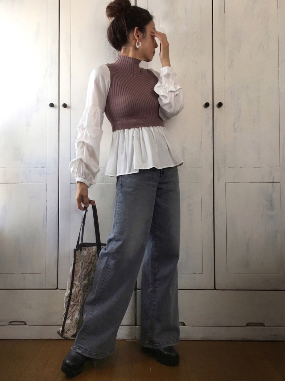 まゆみんのシャツ/ブラウス「リブレイヤードボリュームスリーブブラウス」を使ったコーディネート