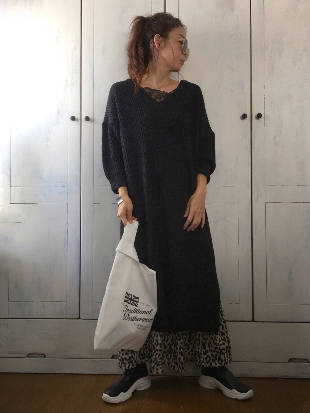 まゆみんのワンピース「前後Vネックローゲージニット」を使ったコーディネート