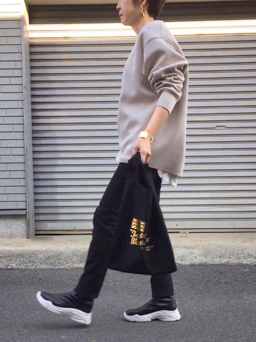 ダンボールニットのトップスはもちもちで滑らか。着た時のシルエットも可愛くて気に入っております。 深めのVネックなので、カジュアルアイテム合わせてもほんのり大人っぽくまとまります。 どえらい歩きやすさで履きまくっているスニーカーライクブーツとともに。 みなさまいつもありがとうございます😊