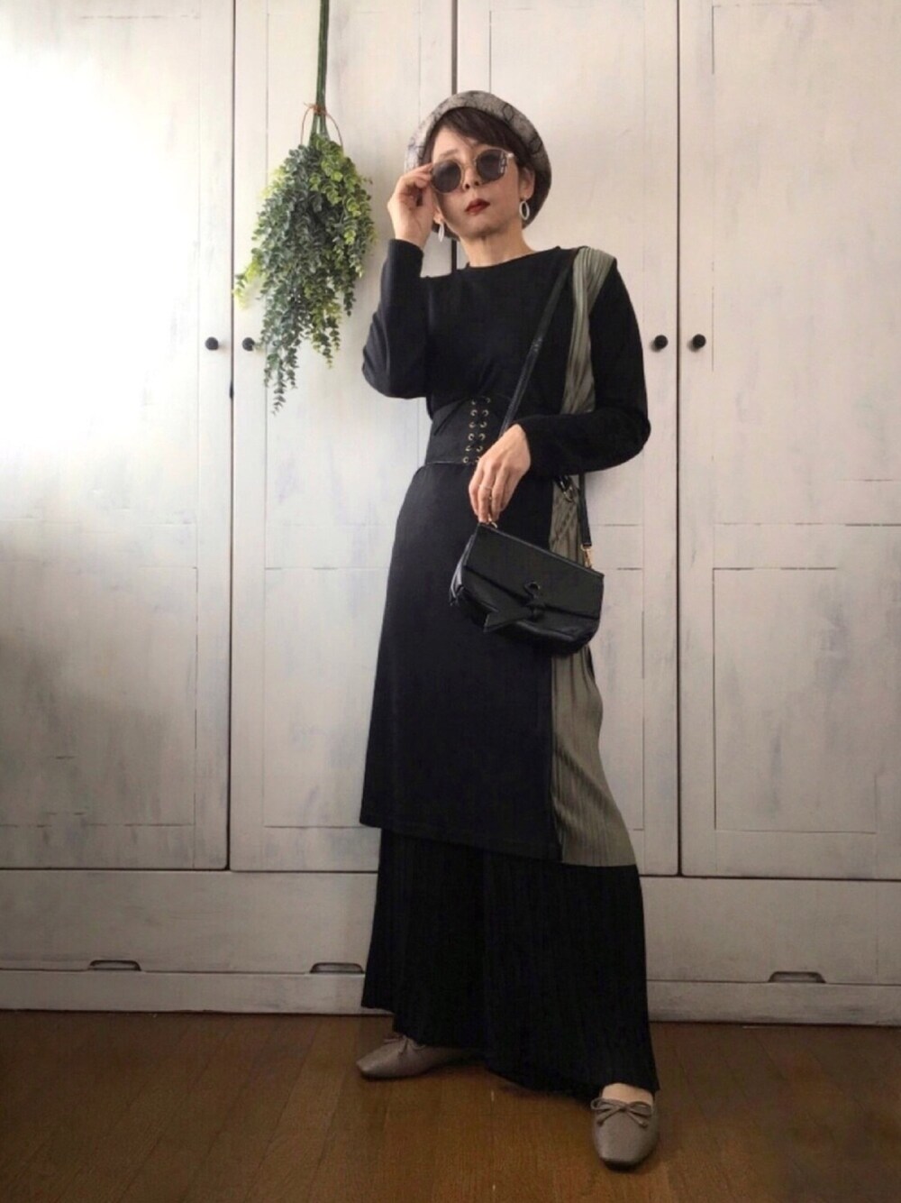 まゆみんのワンピース「サイドレイヤードプリーツカットワンピース」を使ったコーディネート