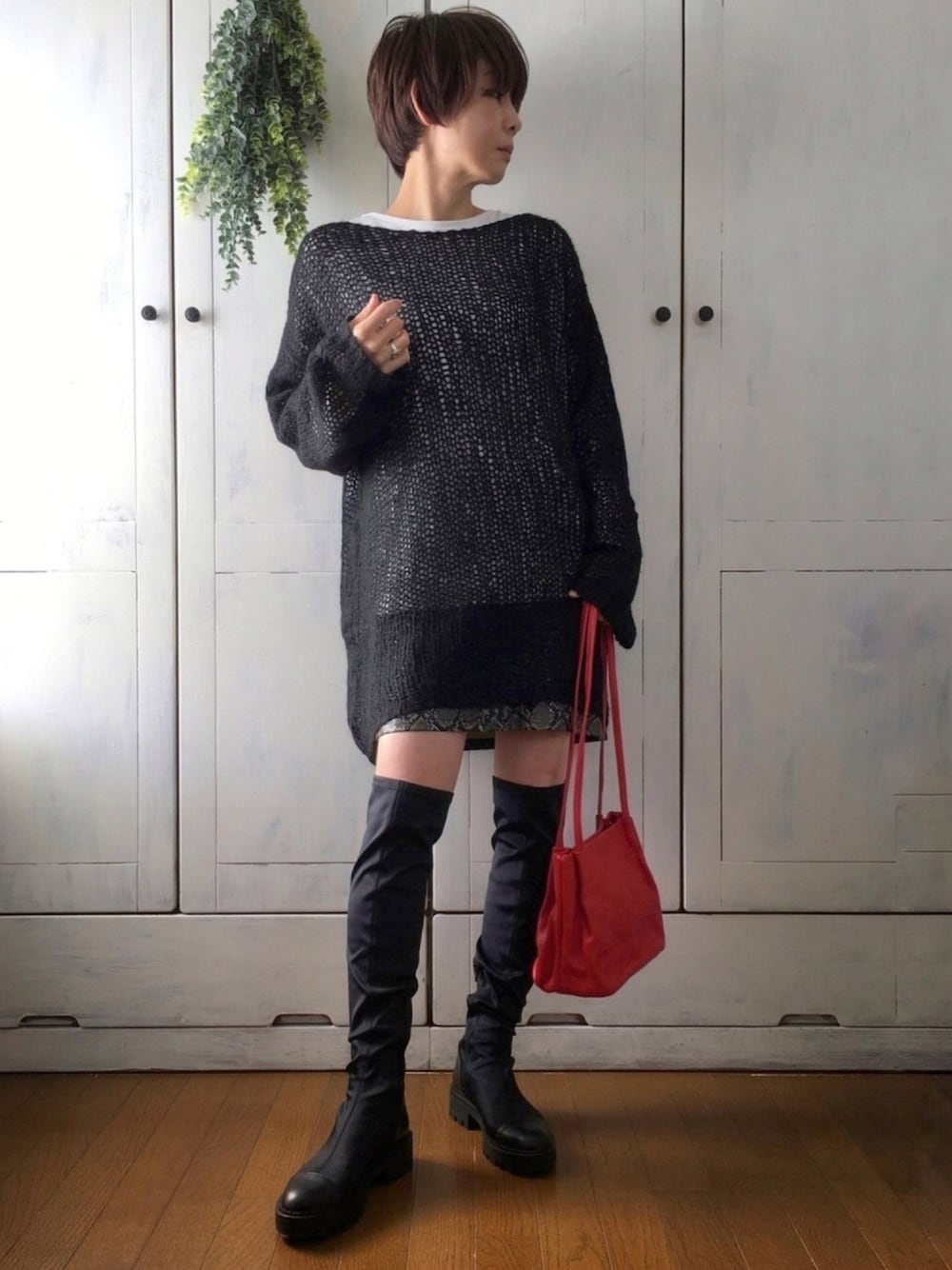 ロングブーツ履けるうちにやっておこうと思ってたコーデ👢 #メッシュニット×長袖Tシャツセット @mysa & Liina ゆるっゆるなメッシュニット。すとんとまっすぐ落ちるデザインで、袖も長めなのでリラックスムード漂う一着。 ちょうどいい感じのTシャツをセットにしてくれていてありがたし✨ ミニスカート合わせて、休日感満載にしました。 ミニスカ×ロングブーツの組み合わせ、自分が着るのもだけど他のかたが着てるのを見るのも大好き❤ 次のシーズンが既に 待ち遠しいなあ(о´∀`о) #pr