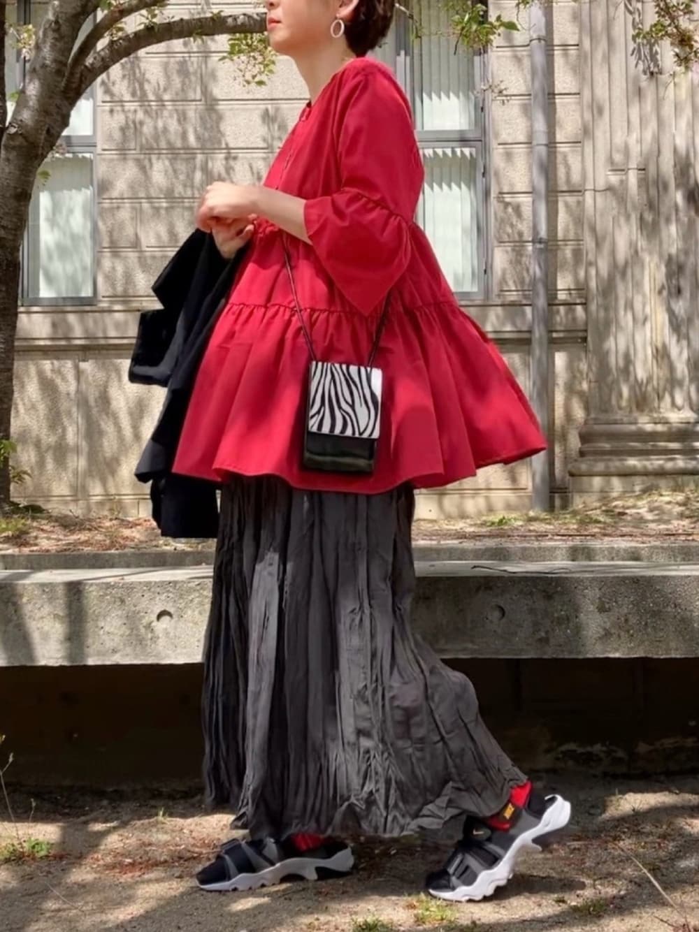 #ティアードチュニック Ambre Neigeさん しっとりと落ち着いた色味の赤のチュニック。ティアードながら大人っぽい雰囲気です。 動く度に揺れるシルエットがとってもかわいい(о´∀`о)♡ 前開きなので羽織りにも使えて、着回しどんどんできそうです♪ 少し肌寒かったので、上にPAGEBOYのルーズなジャケットを羽織りました。小窓に載せてます。 ご覧いただきありがとうございました😊 #pr
