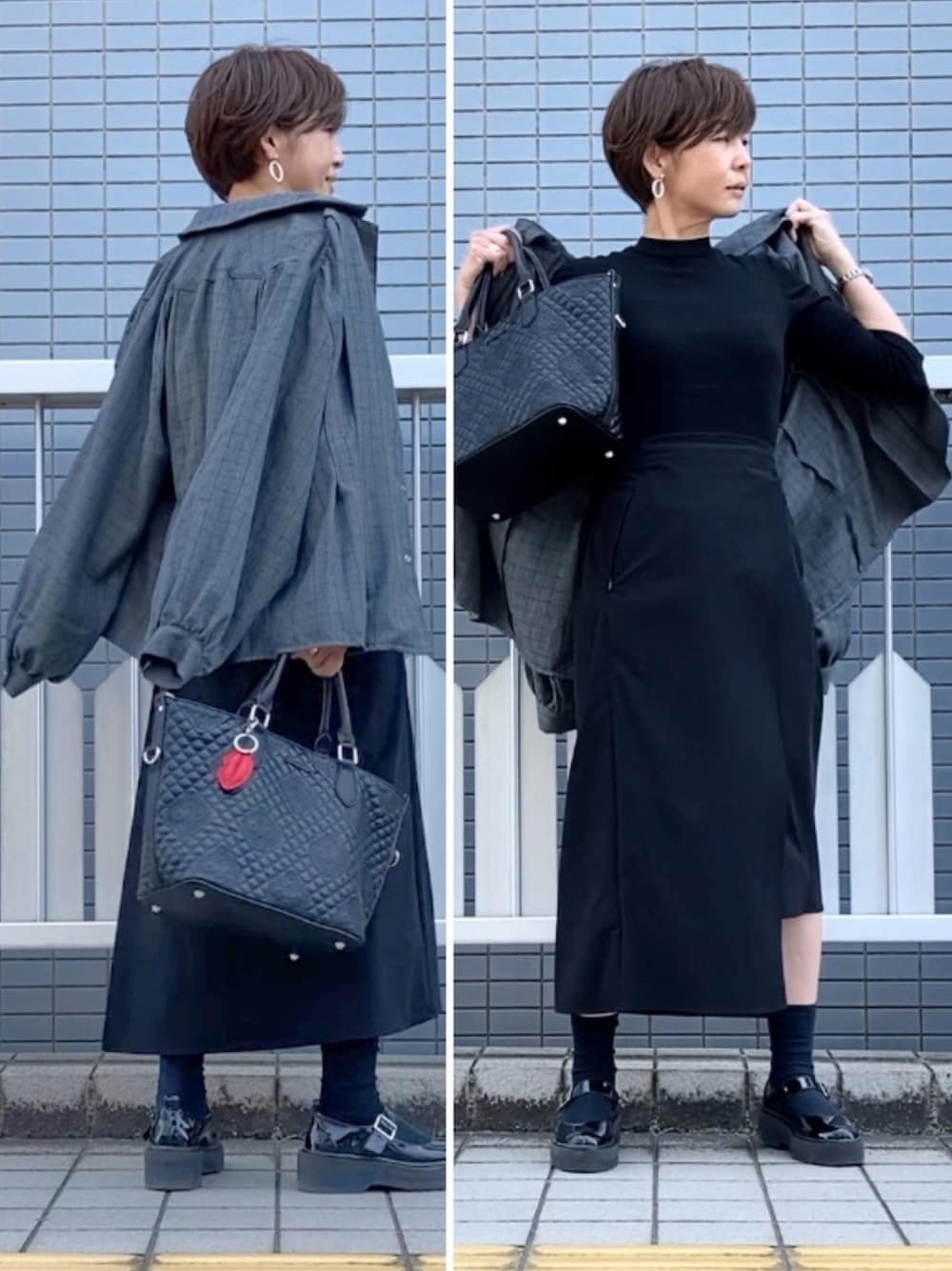 #ドライラップスカート #Uiscel Sense of placeさん お仕事の日に着回し。 タイトスカートとして、職場でも浮きません。 着心地良くてシルエットきれいで、速乾性など機能面もばっちり。丈も長すぎないから、雨の日にもおすすめです☂️✨ そしてラップという一癖あるデザインが、単なるオフィスのタイトスカートからほんのり抜きん出て、あまり他とかぶらないので良いと思います。 トップスにZARAのシンプルなカットソーを合わせて、 羽織りをAmbre Neigeさんの #ウエストタックシャツ にしました。後ろ姿がとてもかわいいです♡ ご覧いただきありがとうございました😊 #pr