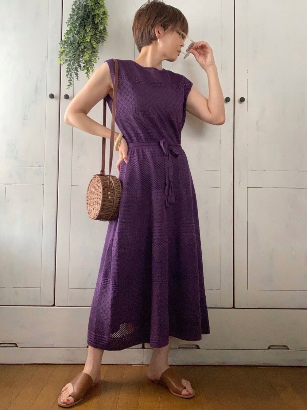 まゆみんのワンピース「クロシェ編み フレンチスリーブ ロングワンピース サマーニット」を使ったコーディネート