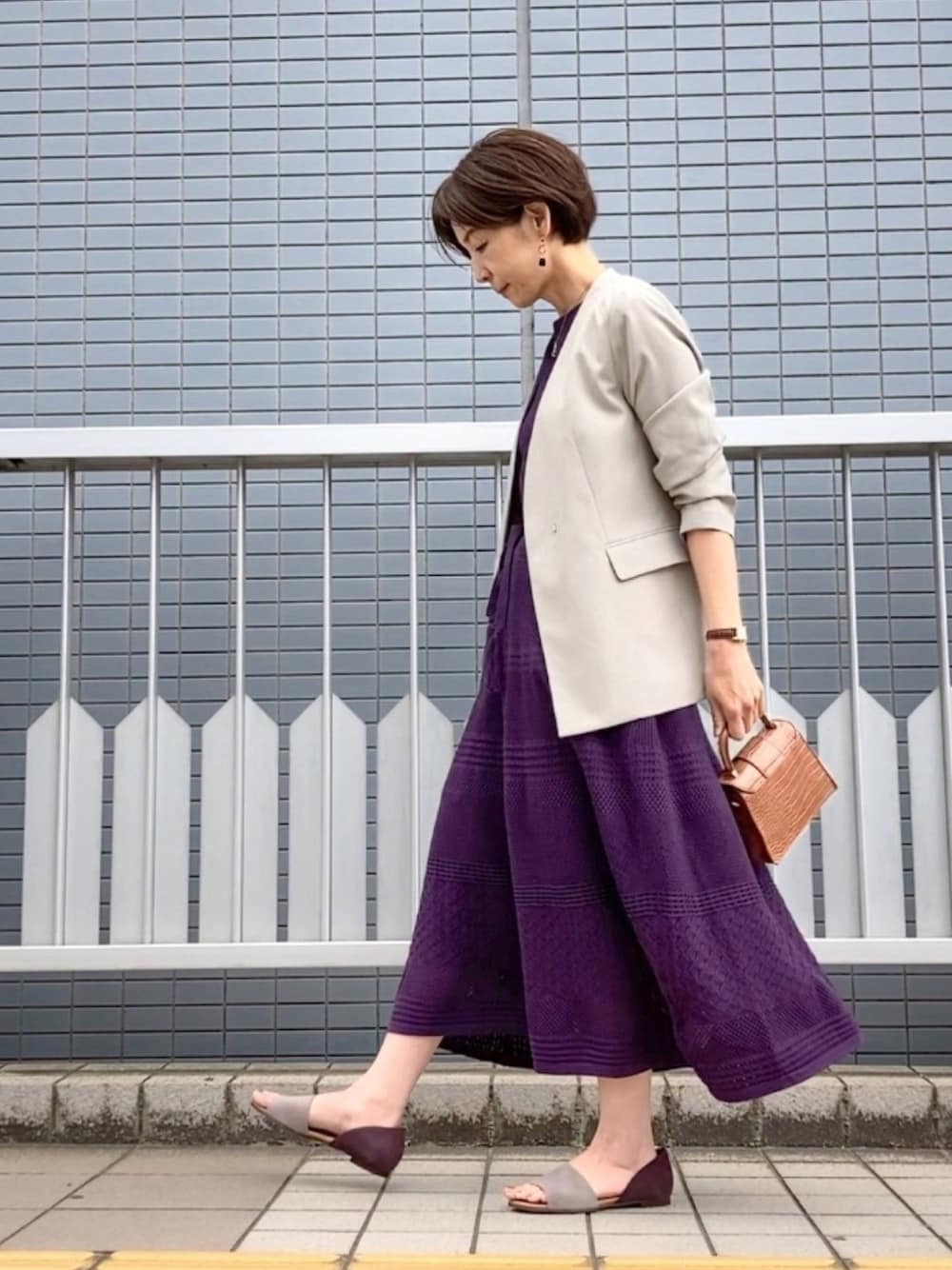 #クロシェ編みフレンチスリーブロングワンピース ABITOKYOさん お仕事モードに着回し。 パープルが映えるベージュのジャケットを合わせました(о´∀`о) 落ち着いた色味のパープルなので、ジャケットにもしっくりきます♡ 本日もZOZOクーポン出てますよー❤️ #ELLENセパレートフラットサンダル RIDE SKO 足にすっと馴染んで歩きやすい✨ 配色なのも可愛くてー🥺❤️ ロデスコさんのアイテムって定番ぽくて使いやすい一方で、ほんのりポイントになって好き! 腕時計は不思議の国のアリスちゃん。可愛くて見る度にストレス溶けるー🥰 ご覧いただきありがとうございました😊 #pr