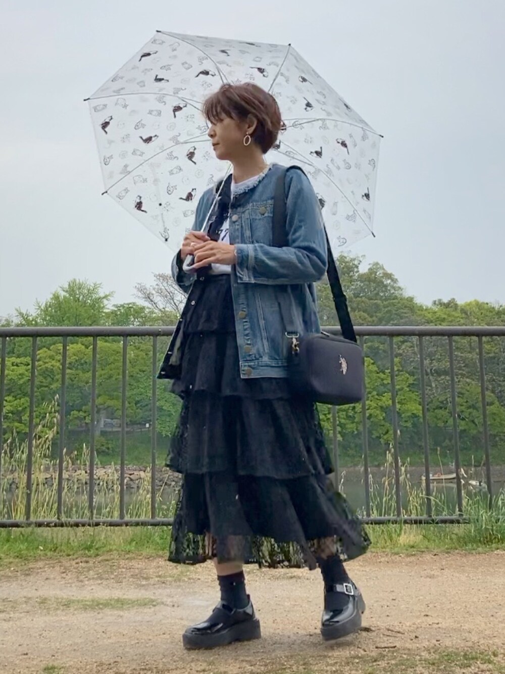 #ZOZO TOWN限定4段ティアードスカート ENNEAさん 贅沢4段のひらひらスカート。 ひらひらというと場合によっては私が着ると痛々しさを醸してしまうのですが、このスカートならば広がり過ぎないのでアリかと🙆🏻♀️←そうじゃなかったらすまぬ ひらひら部分が気になる腰回りを賑してくれて、想像よりも細見えアイテムだったことにびっくりしました🥰 カジュアルとエレガンツ加減のバランスが好みで普段からよくチェックしているエンネアさん。 今日はZOZO千円クーポン発行されてるみたいです✨←勝手に宣伝おばちゃん 雨の日のお散歩コーデでした。 GUの大セールメリージェーン、厚底で歩き安くて合皮なので雨の日歩くのにめっちゃいい🤭💕