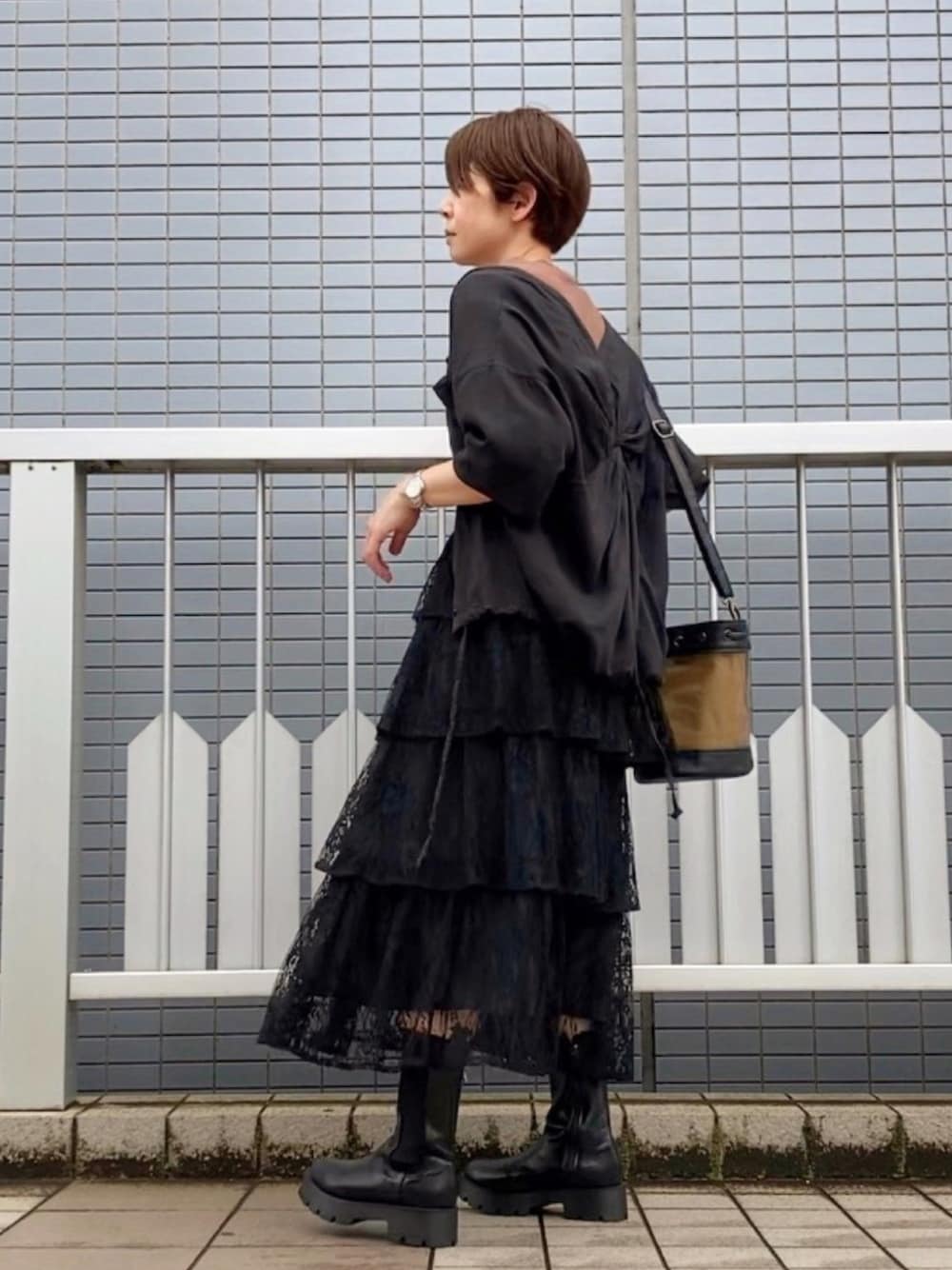 #バックツイストシャツ crie confortoさん 着回し。 カーディガンみたいに羽織れて便利。 袖口はボタン外さなくても捲れます♡ #4段ティアードスカート ENNEAさん 広がり過ぎない、贅沢4段ティアードスカート。 腰まわりをヒラヒラで賑やかしてくれてるので、からだのライン気になりません。 本日ZOZOクーポン出てるみたい♪ 雨っぽい日だったのでvivianさんの厚底サイドゴアブーツを。 雨気にならずがしがし歩けてこれは良い✨ 冬以外にもどんどん使いたい。