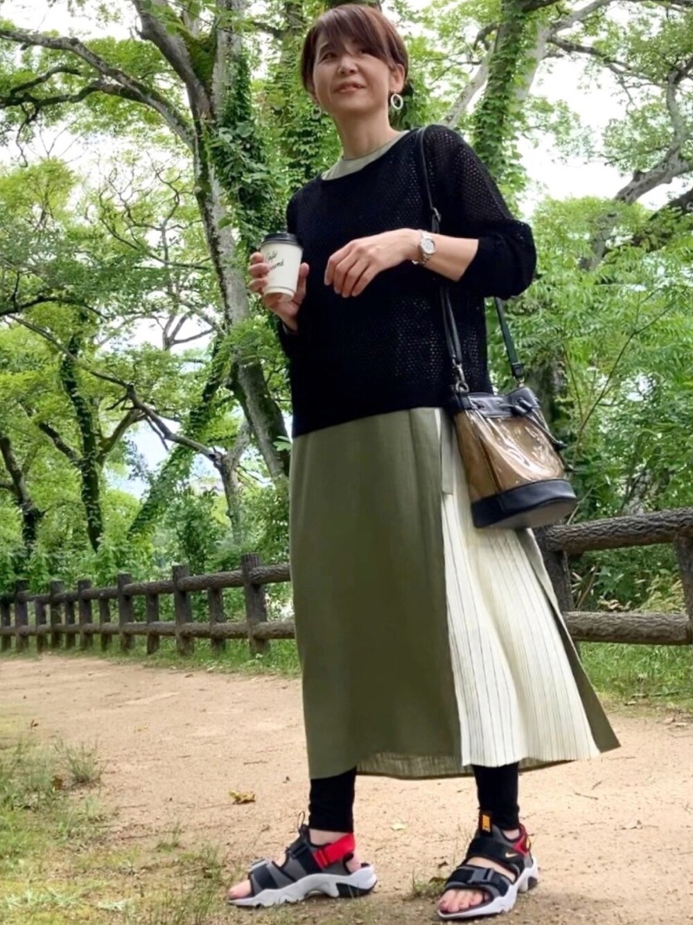 まゆみんのワンピース「リネンライクプリーツ切替ワンピース」を使ったコーディネート