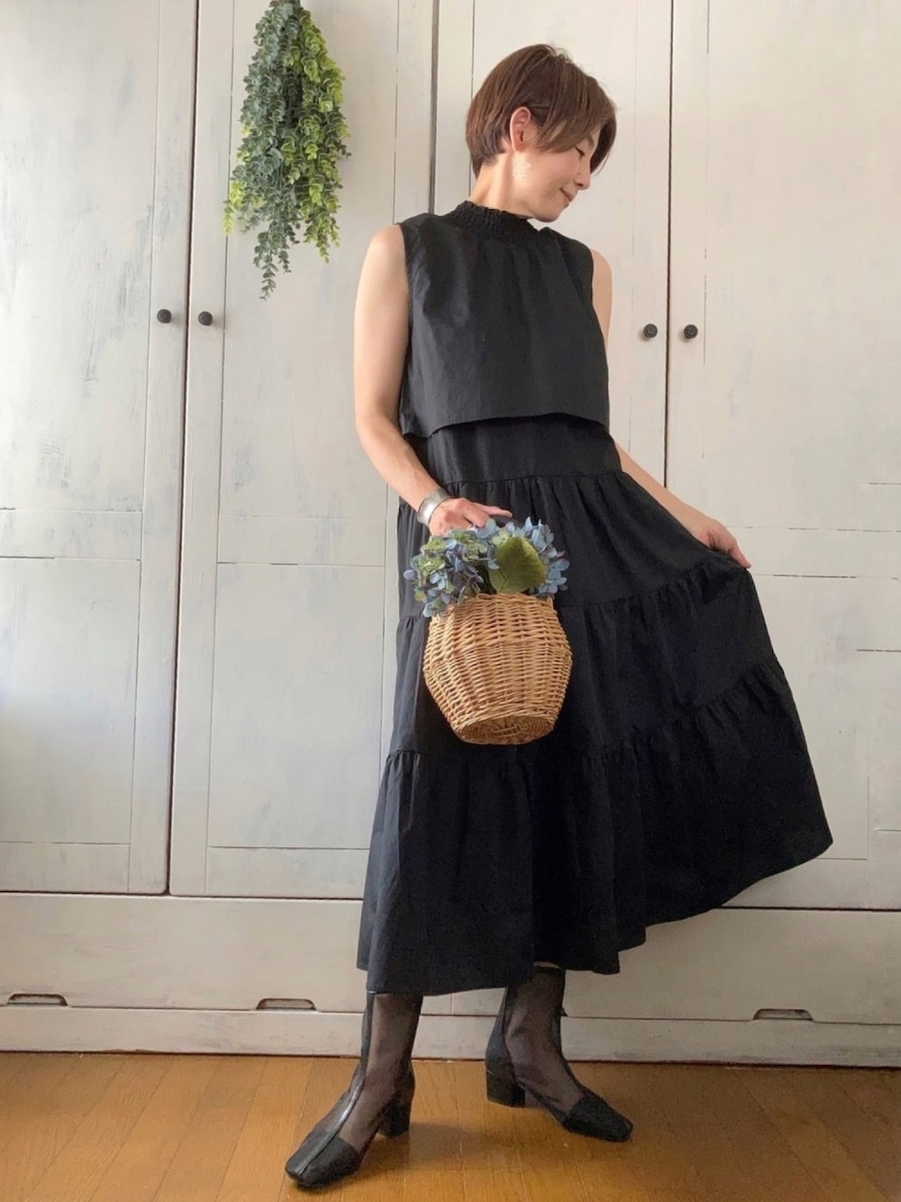 まゆみんのワンピース「レイヤードノースリティアードワンピース」を使ったコーディネート