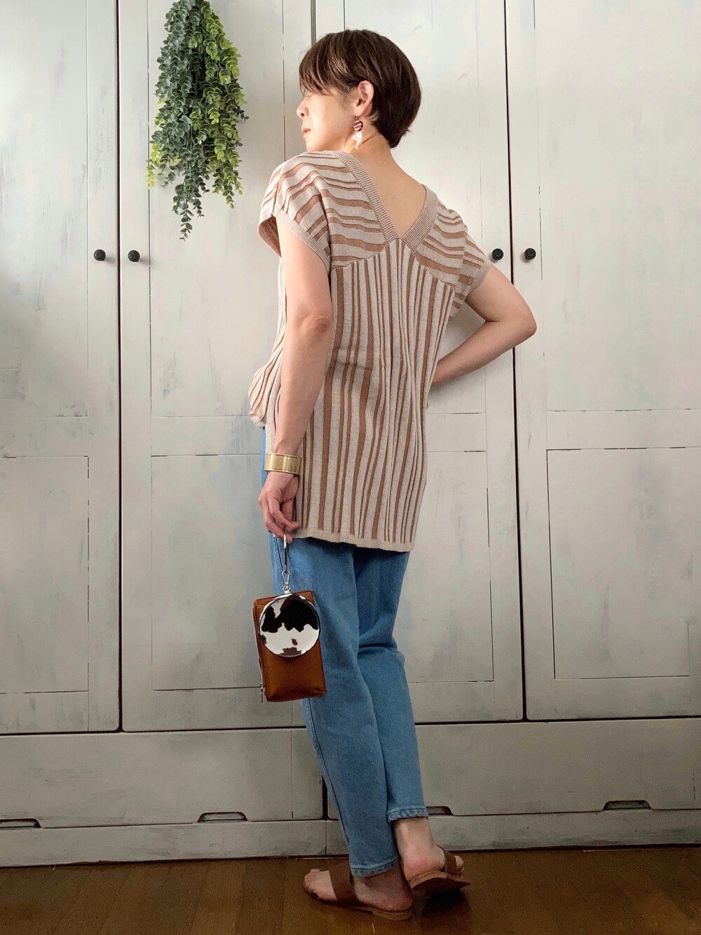 2WAYストライプ柄綿混ニットチュニック ANDJさん セットアップからの着回し。 Vネック後ろにするとぐっと大人モードに♡ essentials マムズデニムパンツ EDWINさん はき心地良くて形もきれい。 ひとつあると絶対便利! ご覧いただきありがとうございます😊 #pr