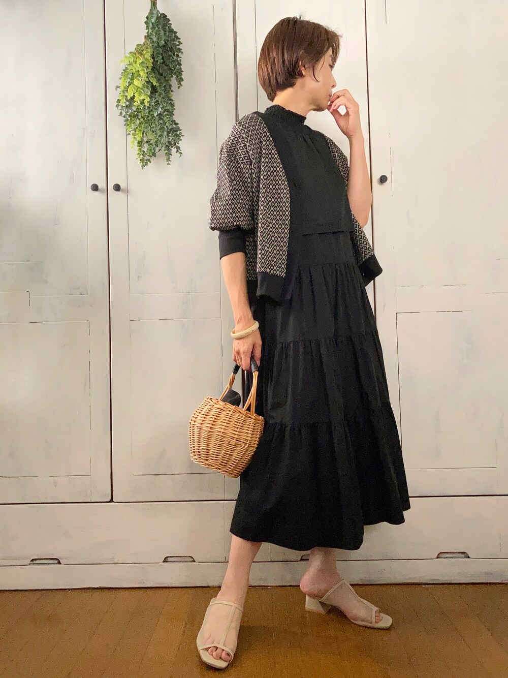 #前後2WAYラメラメジャガードカーディガン #レイヤードノースリティアードワンピース Mysa & Liinaさん ジャガードのカーディガンってかわいい。 丈が程よく短めなので、ワンピに羽織ってもスカート部分可愛く見せてくれます。 黒×黒に足元ヌーディの組み合わせ。 ご覧いただきありがとうございました。