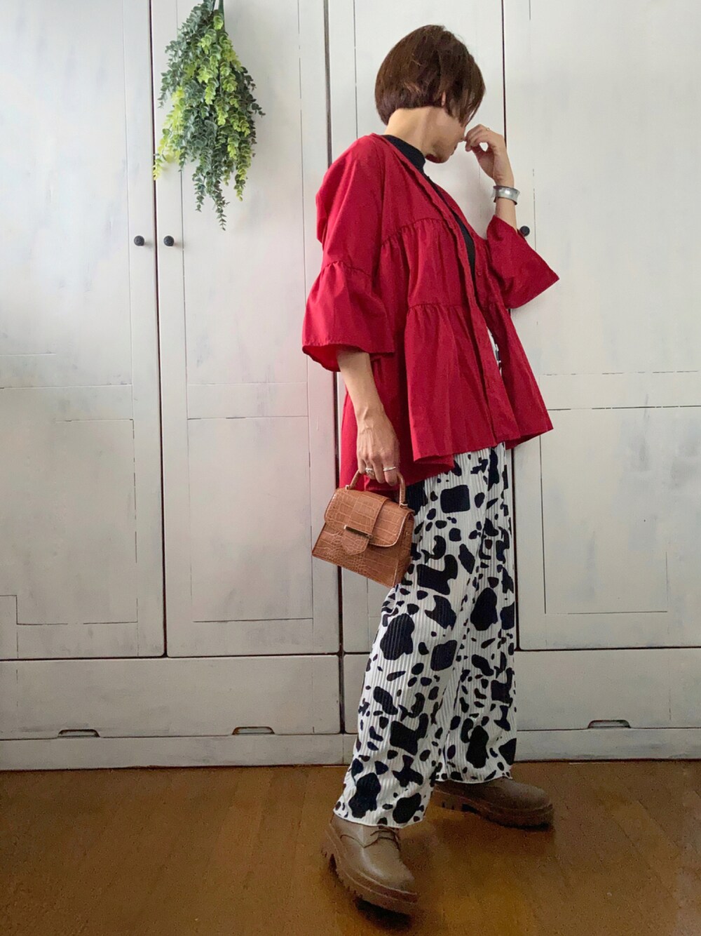 #柄アソートプリーツパンツ Retro Girlさん 牛なのか? アート柄なのか? いずれにしてもぱっと目を引く、大柄モノトーンなプリーツパンツ🐄 本日ZOZOTOWNで10%オフな上、クーポンも出てめちゃプチプラな模様🥺❤️ 赤とベージュでまとめました✨ ご覧いただきありがとうございました♪ 前回投稿をフォルダに入れてくださった、HARUさん、YURiさん、maキshiさん、ゆっきーさん、MR.Mさん、kikiさん、ぱぱさん、たまにさん、たっくん、どうもありがとうございました😊