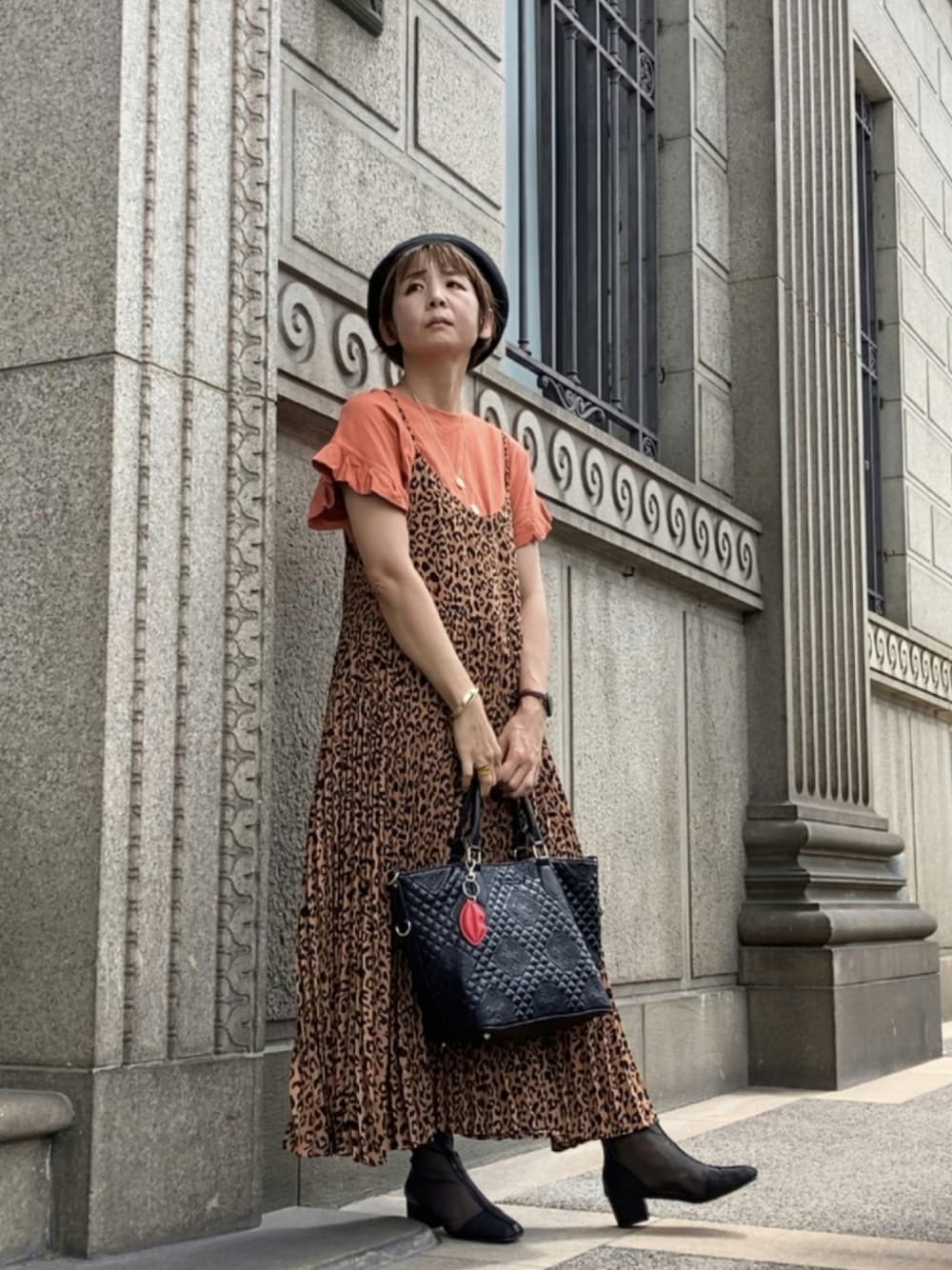 まゆみんのワンピース「レオパードプリーツキャミロングワンピース【ZOZO限定アイテム】」を使ったコーディネート