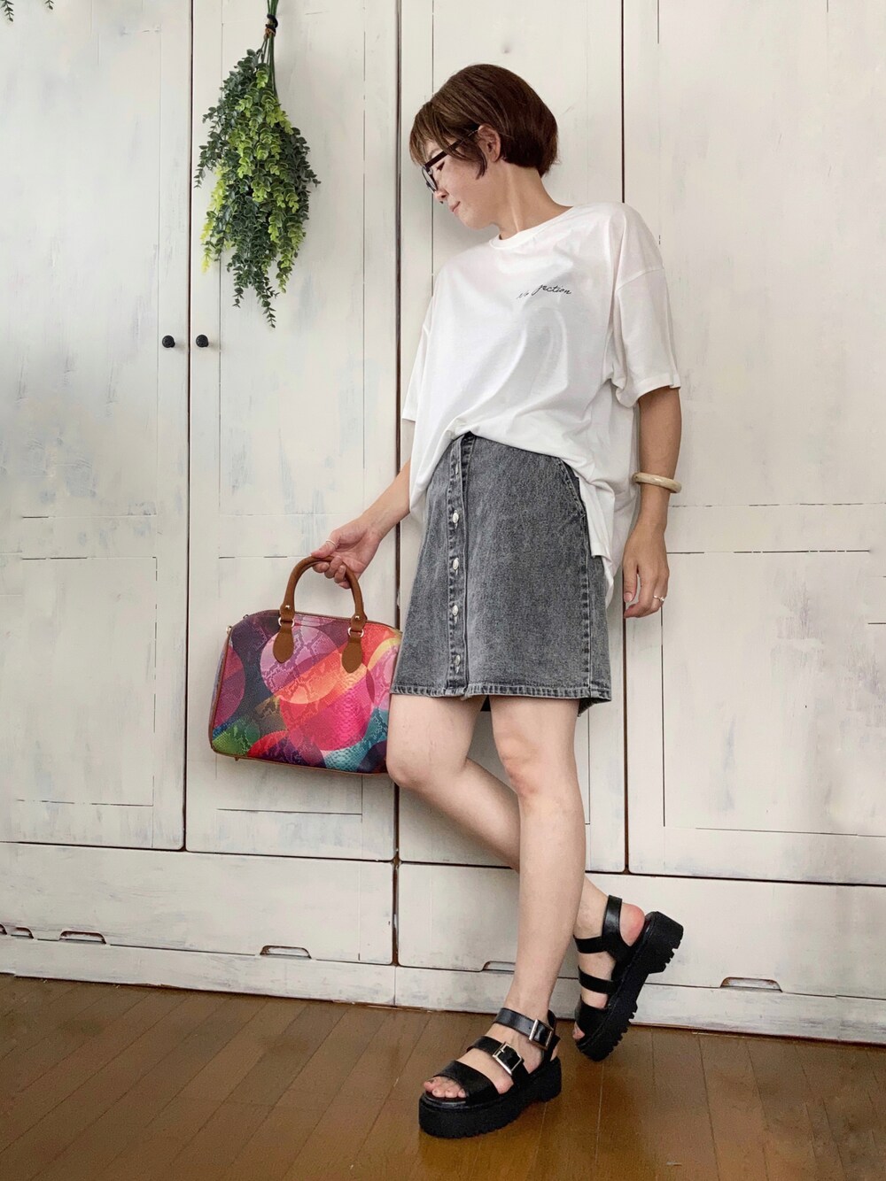 まだまだ暑い☀️ 今回はしっかり夏コーデ🍉 #ロゴプリントオーバーサイズ半袖Tシャツ Match & more 前回のお散歩コーデの黒Tシャツに続いて、白Tシャツ。 さらっと軽い生地で着心地良いです🥰 秋に差し掛かったら、重ね着してももたつかなくて良さそう✨ ご覧いただきありがとうございましたり 前回投稿をフォルダに入れてくださった皆さま、ありがとうございました🌼