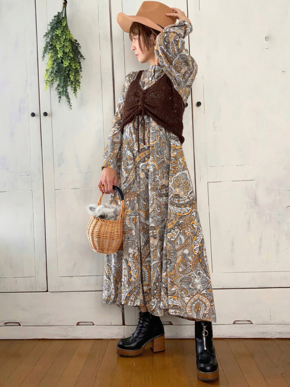 まゆみんのワンピース「ペイズリーティアードワンピース」を使ったコーディネート