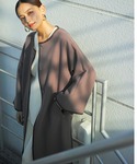 まゆみんのその他アウター「【2021AW】圧縮杢ニット・フェイクレザーパイピング・フレアーデザインコート」を使ったコーディネート