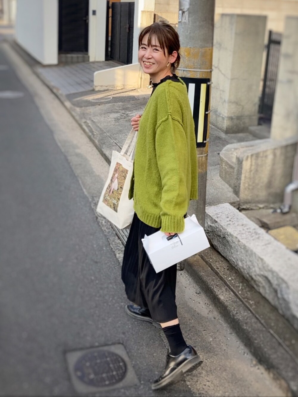 近場散歩コーデ。 昔ながらのケーキ買ってもらってご満悦のアラヒフ。 🌹シフォンジョーゼットアコーディオンプリーツフリルネックワンピース WHITE JOOLA @whitejoola_official @whitecollection_official 胸元・お背中の細かいプリーツが、裾に行くに従って広がりを見せる、美しいシルエットのワンピース✨ カーディガン重ねて、カジュアル寄りなデイリーコーデにも🙆🏻♀️ デイリーな散歩のバッグはやはりタツキさんとこのロンくんバッグ♡ ホワイトジョーラさんは公式ストアではいつも20%オフですよ🥺💕