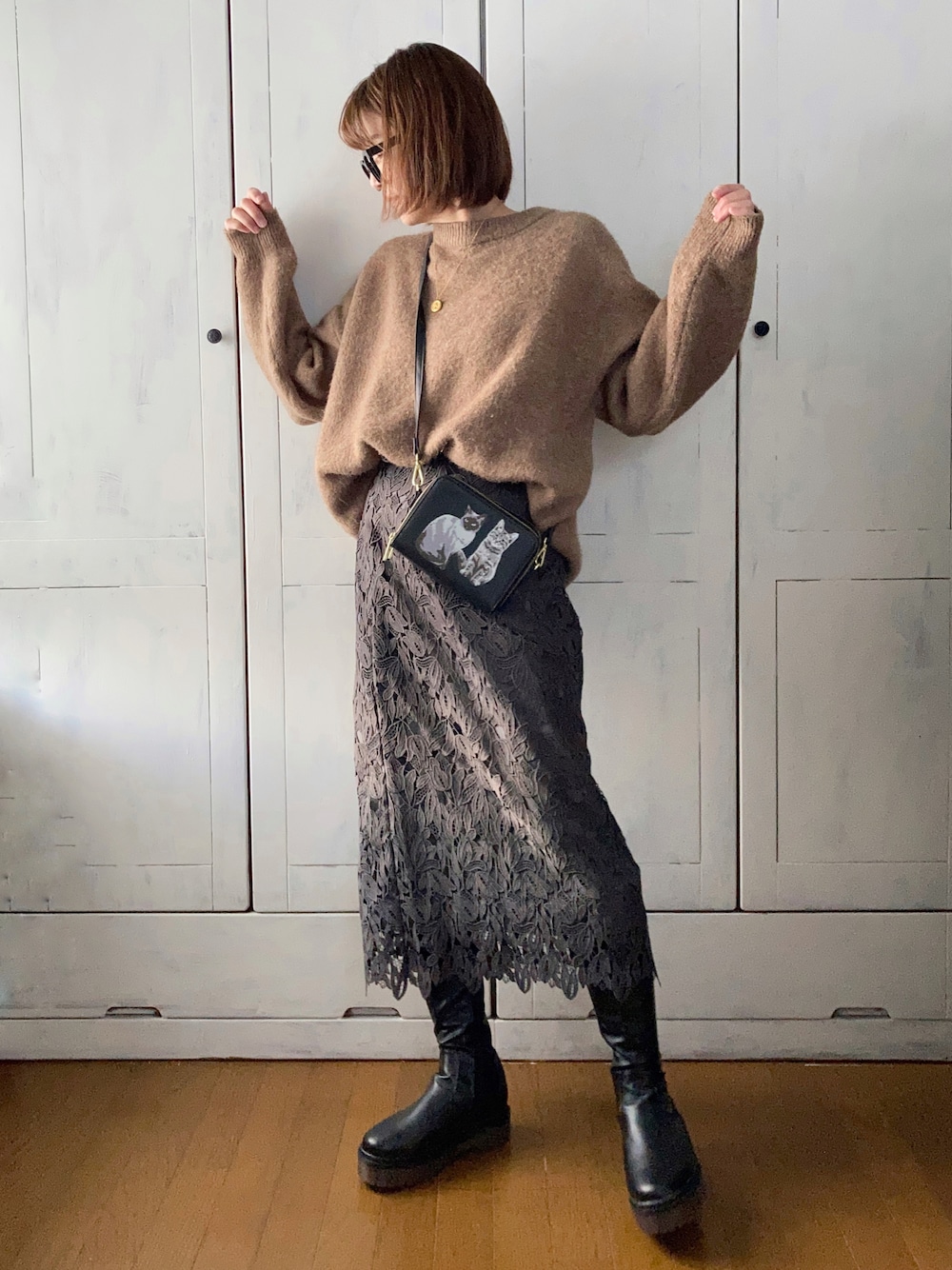 まゆみんのニット/セーター「【ZOZOTOWN限定】【ユニセックス】モヘアライクジャガードクルーネックニット」を使ったコーディネート