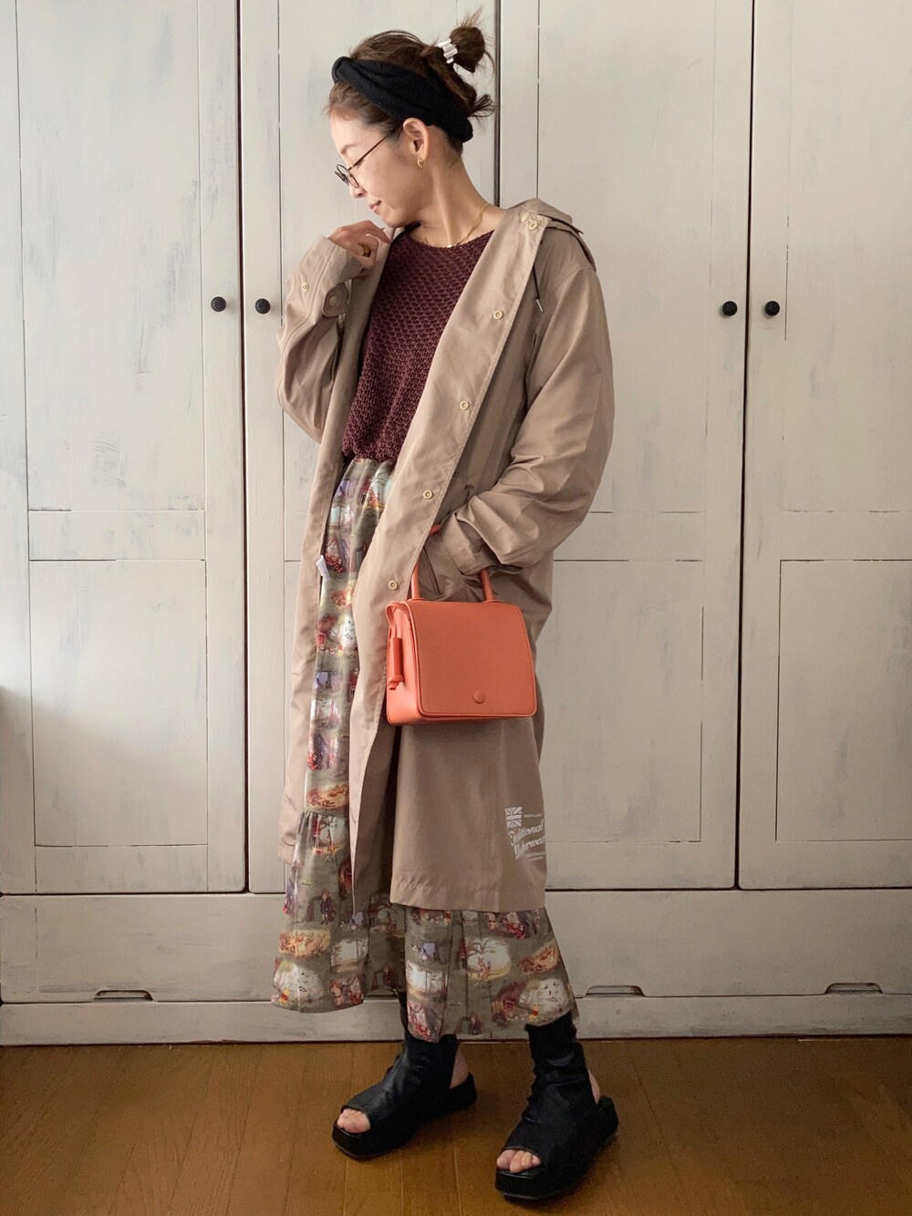 オーソドックスなコートみたいなレインコートは、雨の日以外も羽織として便利です。 多色使いの柄スカートとも好相性。 スカートはプーさん柄ですが何か(о´∀`о)くすくす ● PENRITH RAIN PACKABLE Traditional Weatherwear ステンカラーコートみたいな雰囲気で合わせやすいです。 しっかりしているのに軽く、シャカシャカオンのしない良い生地です。 ● 100エーカーの森柄スカート ROPE’ PICNIC ちゃんとティガーもピグレットも、クリストファーロビンも描かれているスカート。 好きすぎて着ないときは飾っています。 バッグはティガーの色を拾って、鮮やかなオレンジのもの。 ティガーから色を拾う日が来ようとは。 PR