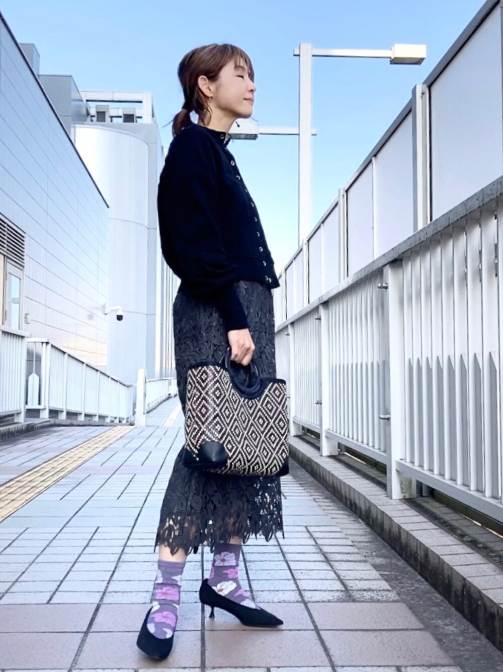 まゆみんのソックス/靴下「[LD191W]BIG BLOOM Plum」を使ったコーディネート