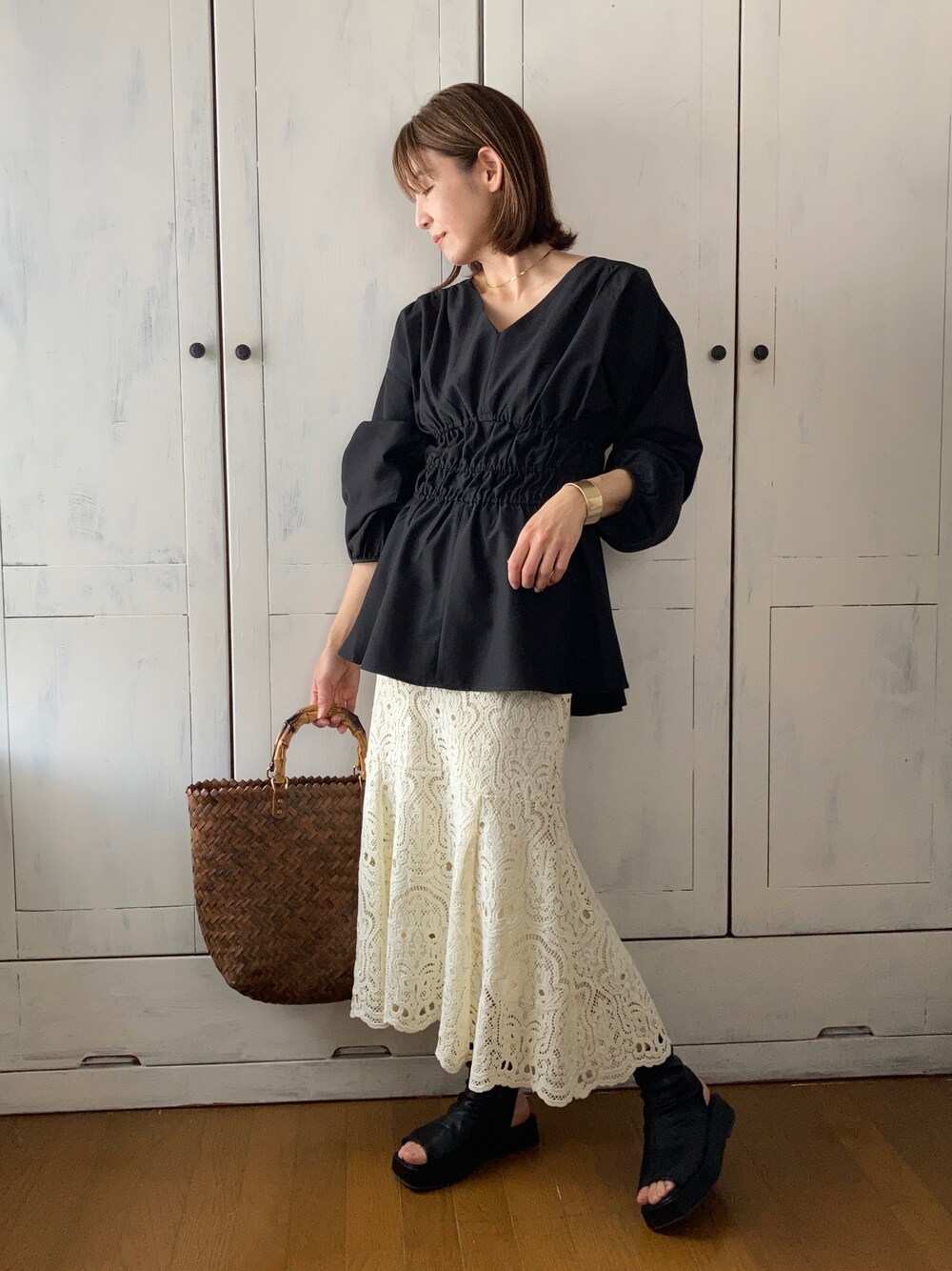 まゆみんのシャツ/ブラウス「SHIRRING V/N BLOUSE/シャーリングブイネックブラウス」を使ったコーディネート